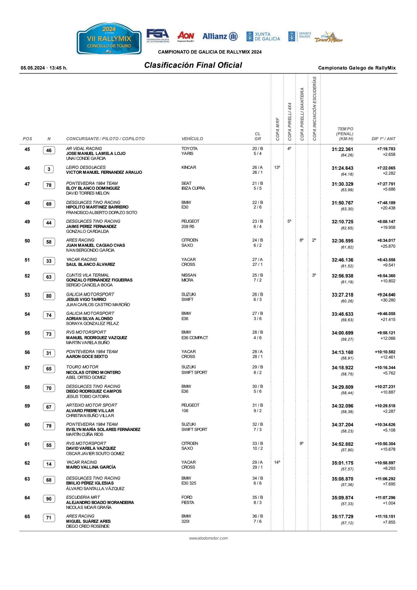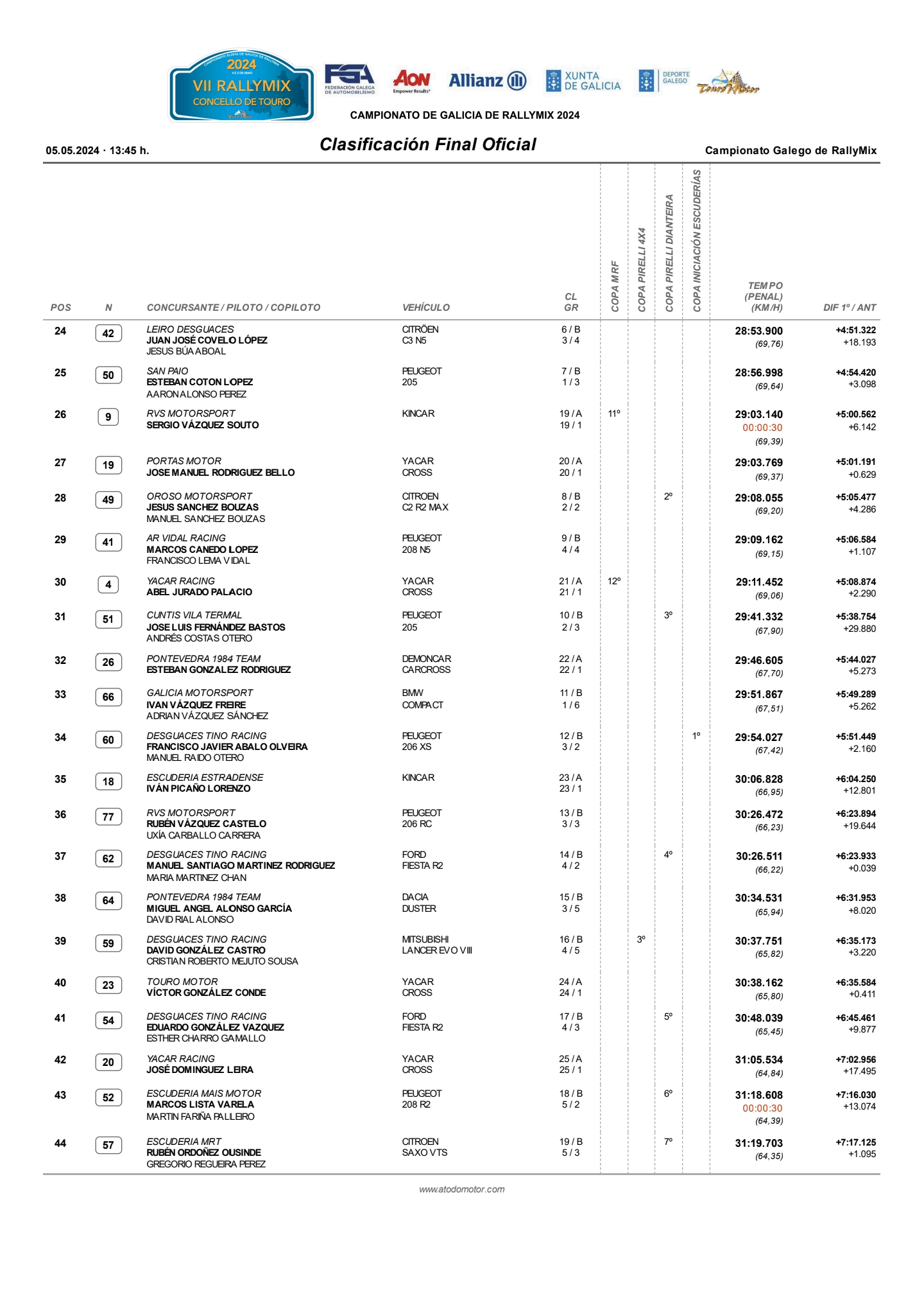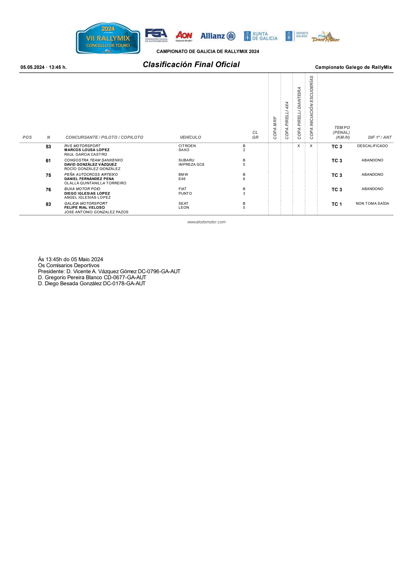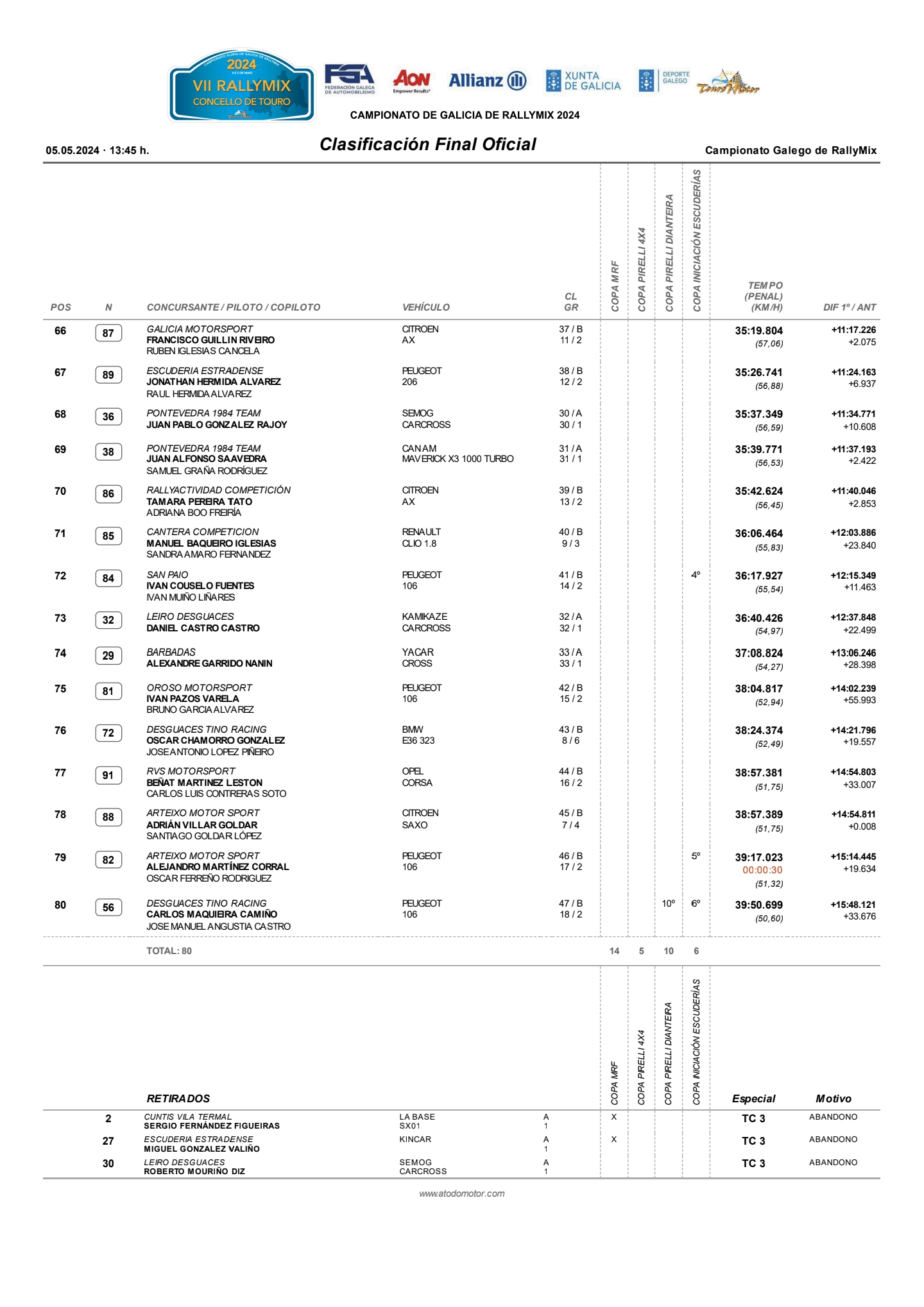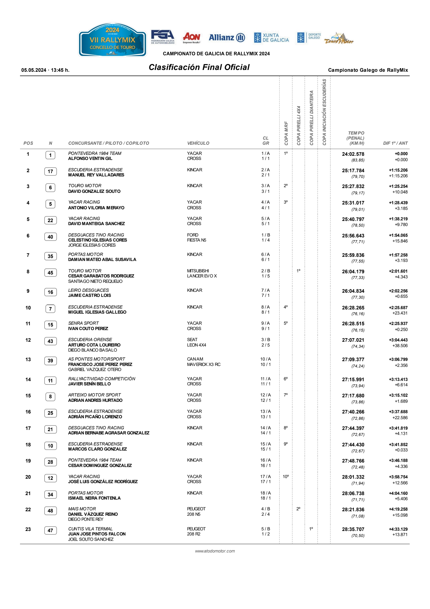 En cuanto a la Copa Pirelli 4×4, el podio se completó con Daniel Vázquez y Diego Ponte y David González y Cristian Mejuto.