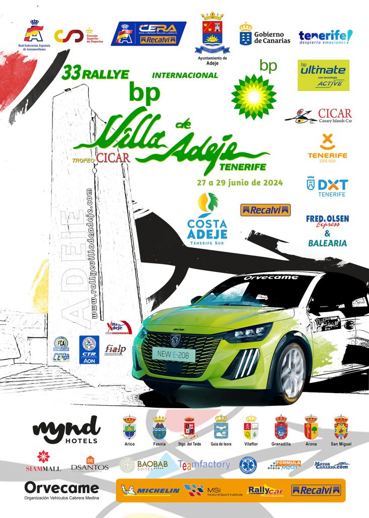 33 Rally Internacional Villa de Adeje - BP Tenerife Trofeo Cicar 2024 ENLACES DE INTERÉS: Web oficial Perfil de Twitter oficial Perfil de Facebook oficial Reglamento particular Programa horario Itinerario Horario Lista de inscritos Mapa General Google Maps Radio Online Tiempos Online Tablón de anuncios oficial