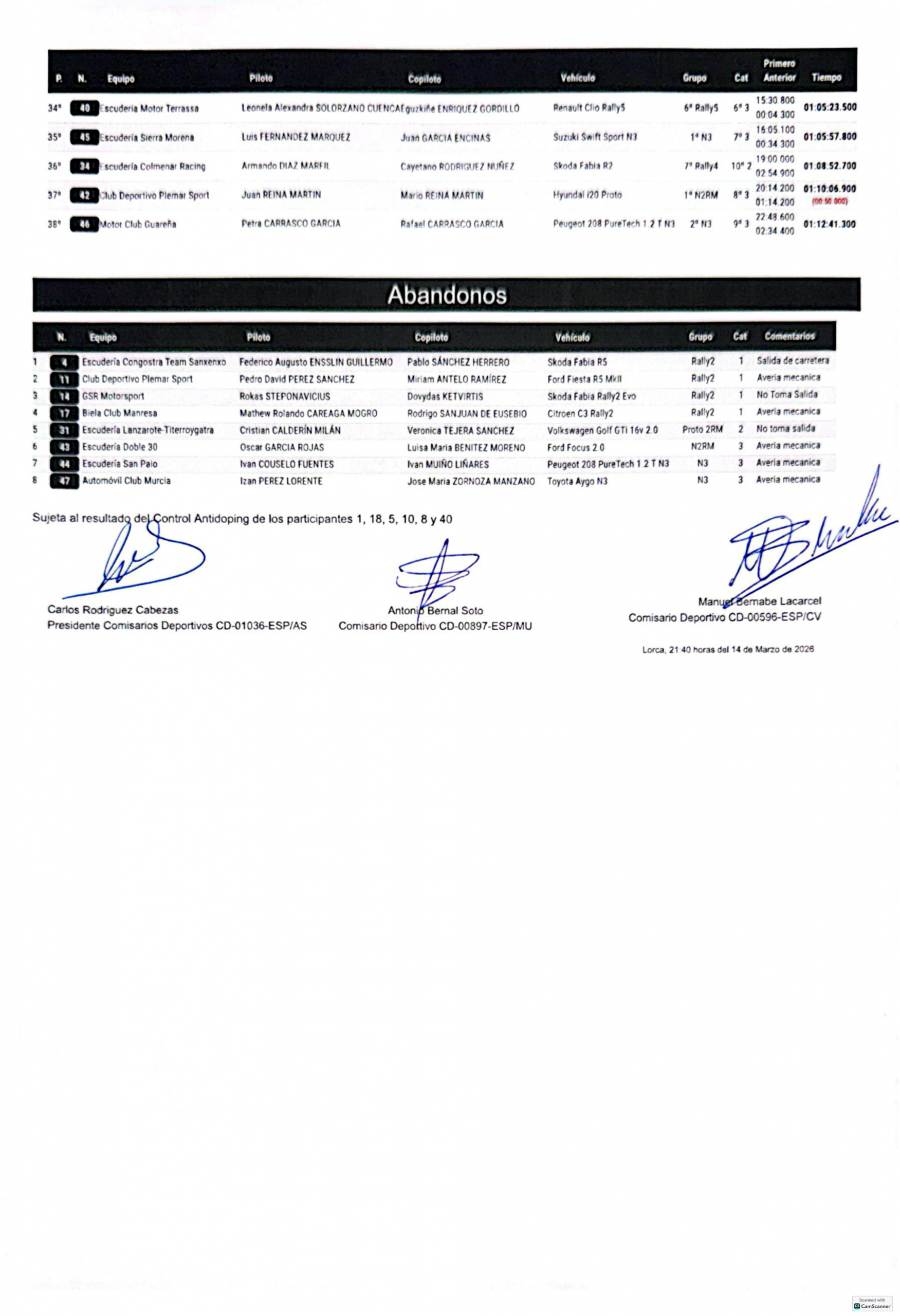 Aquí os dejamos la Clasificación Final Oficial: