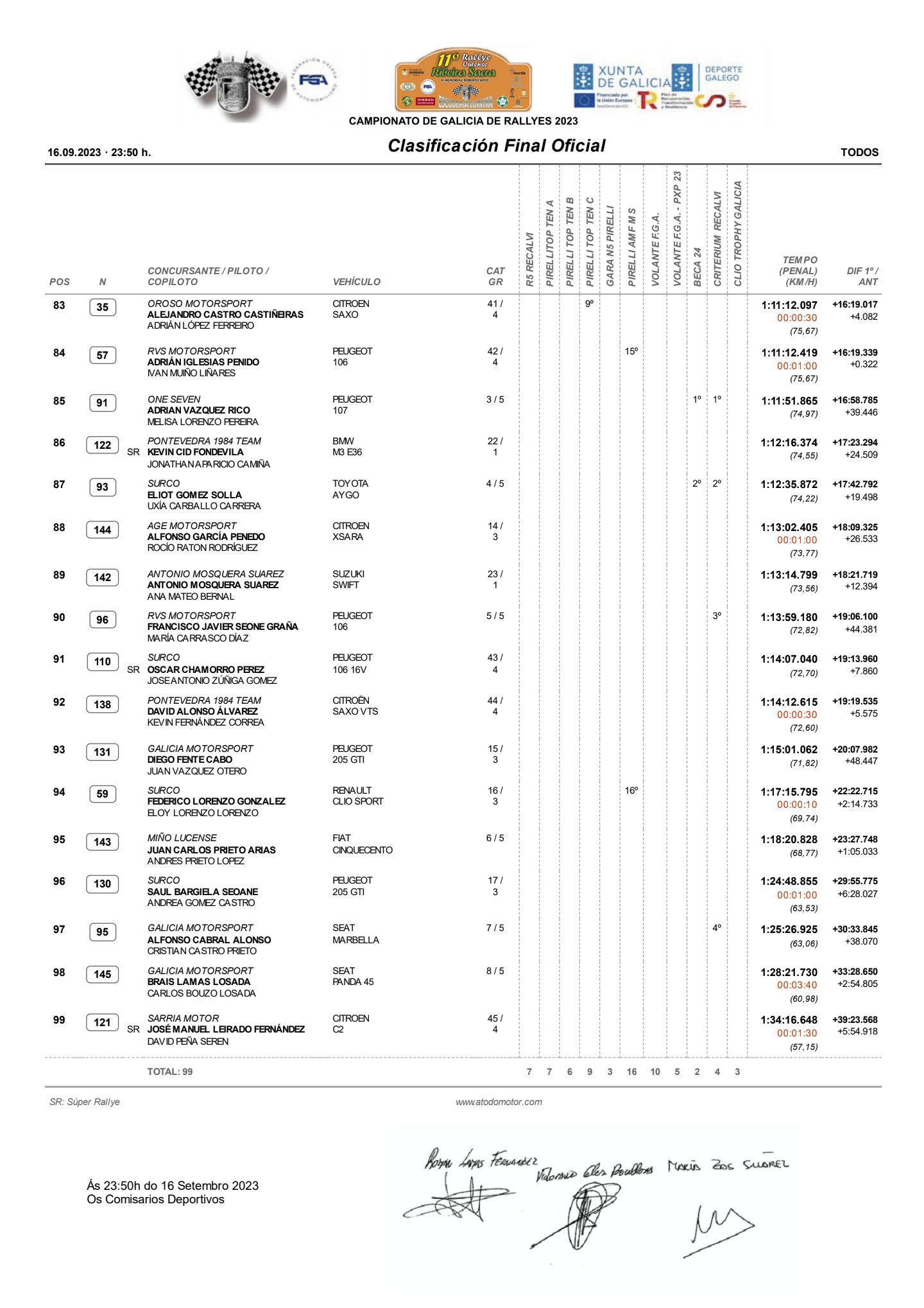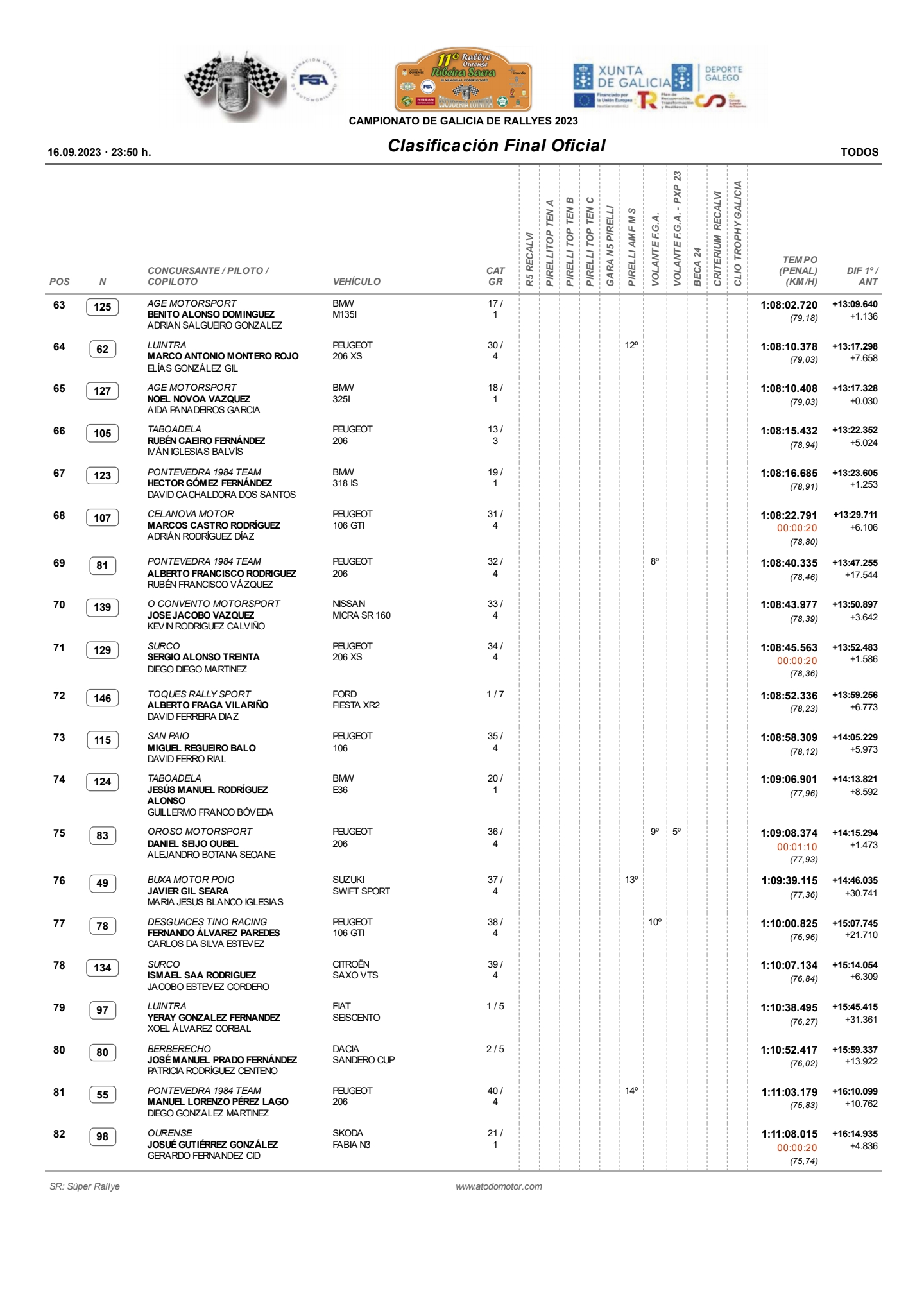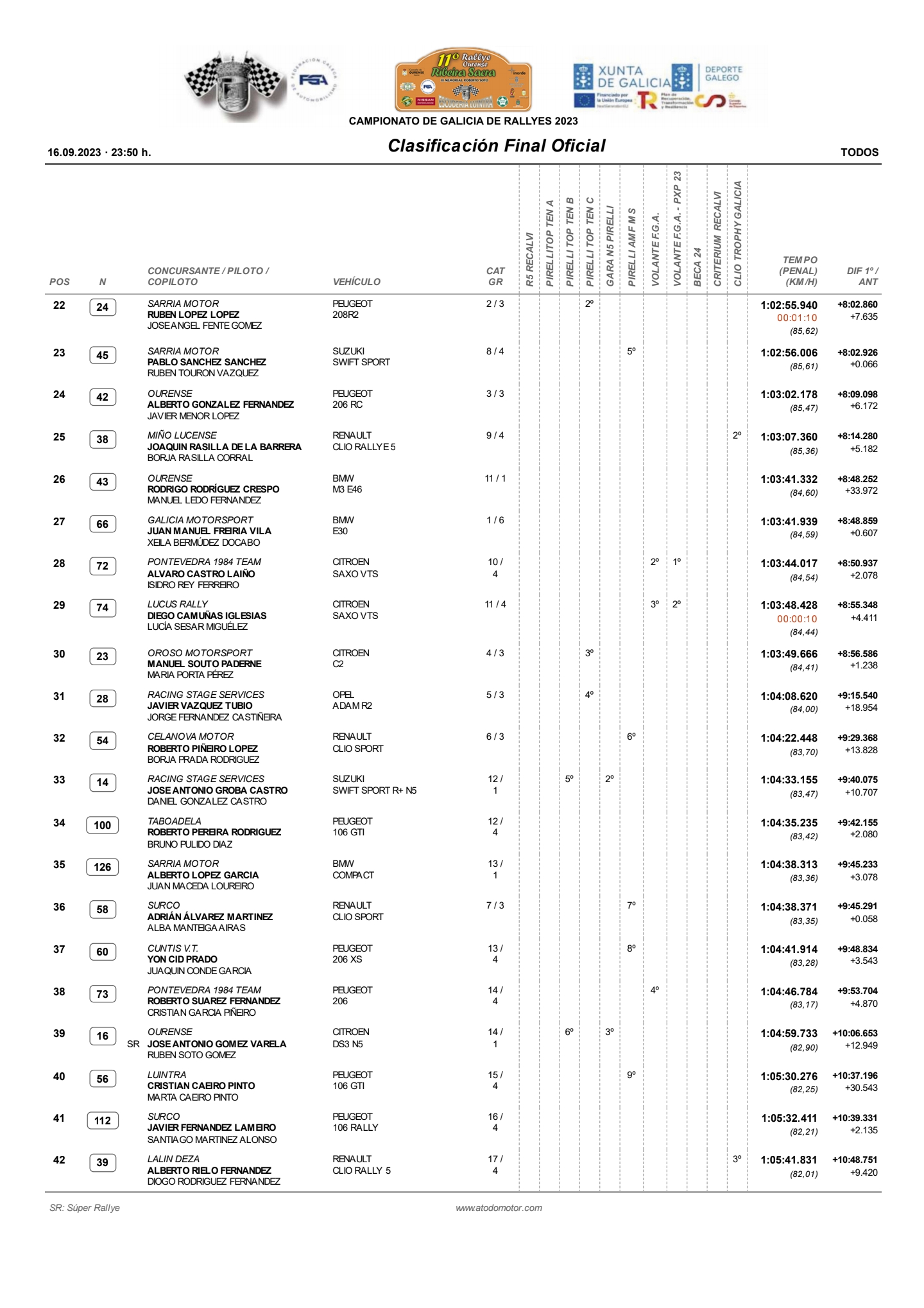 Aquí os dejamos la clasificación final oficial