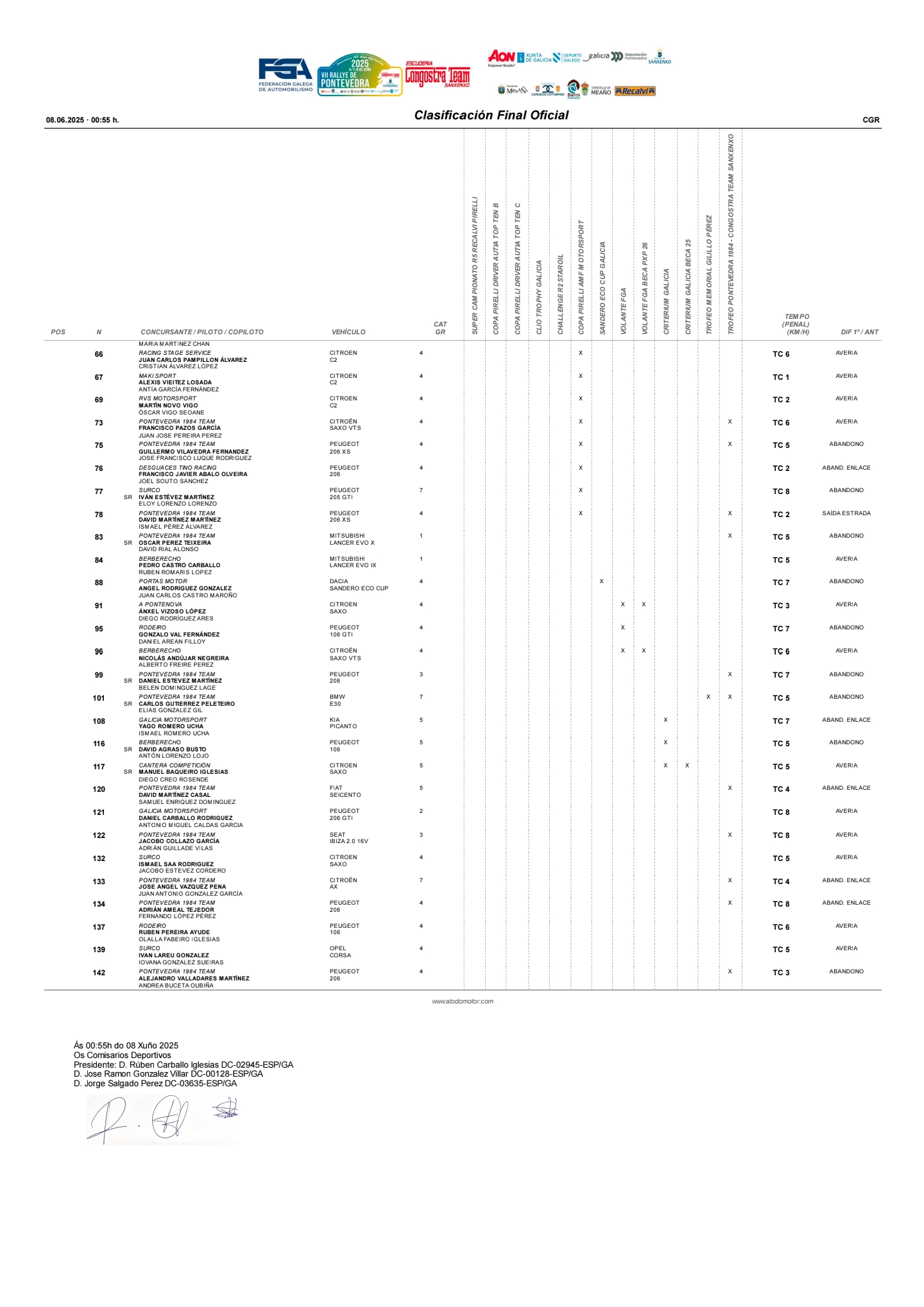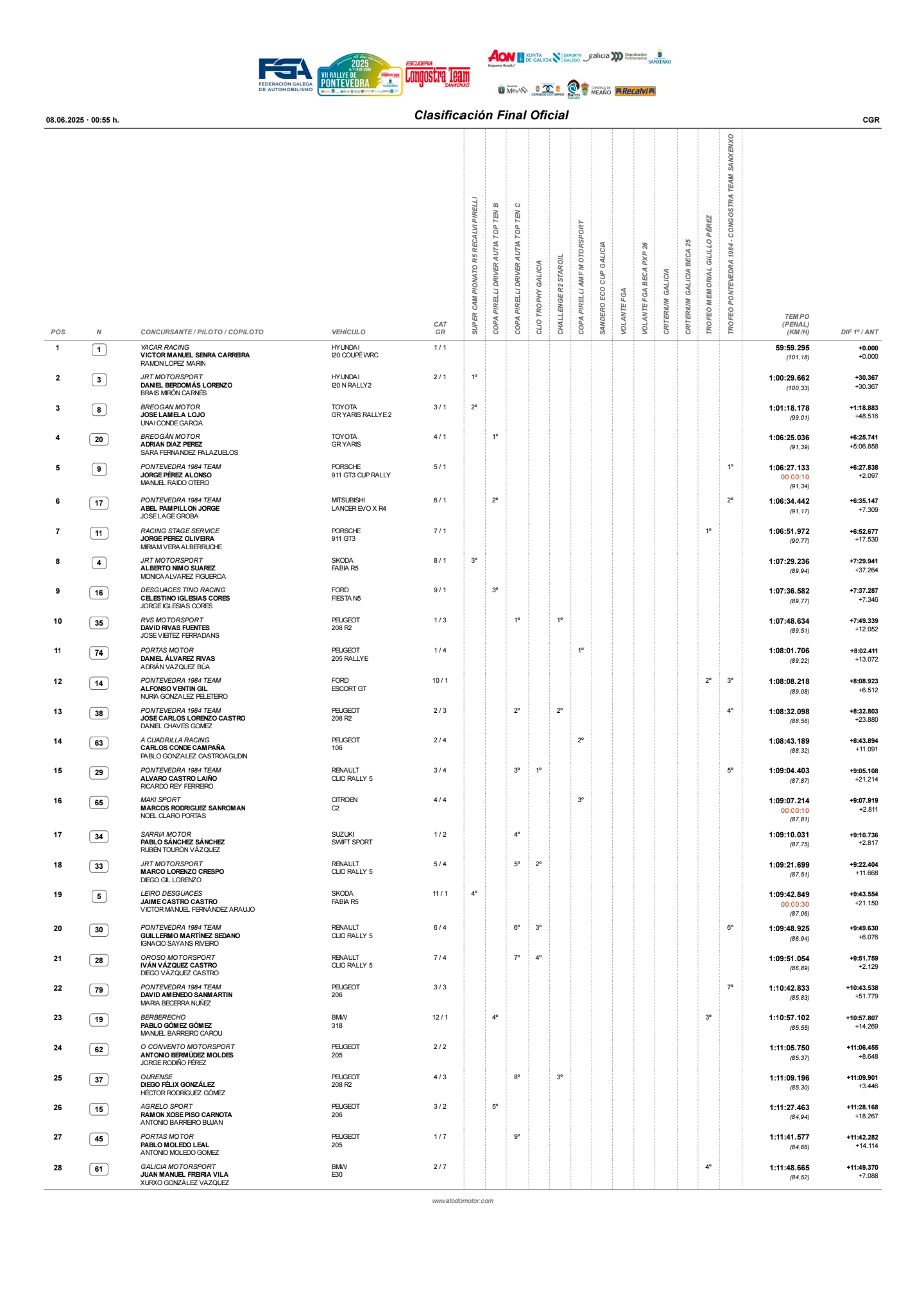 Clasificacion final oficial del Rally de Pontevedra 2025