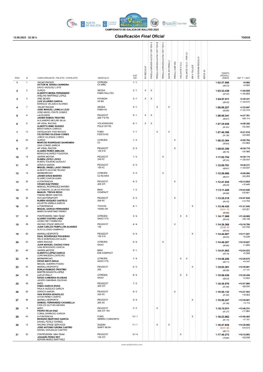 Aquí os dejamos la Clasificación Final Oficial Rally Mariña Lucense 2023