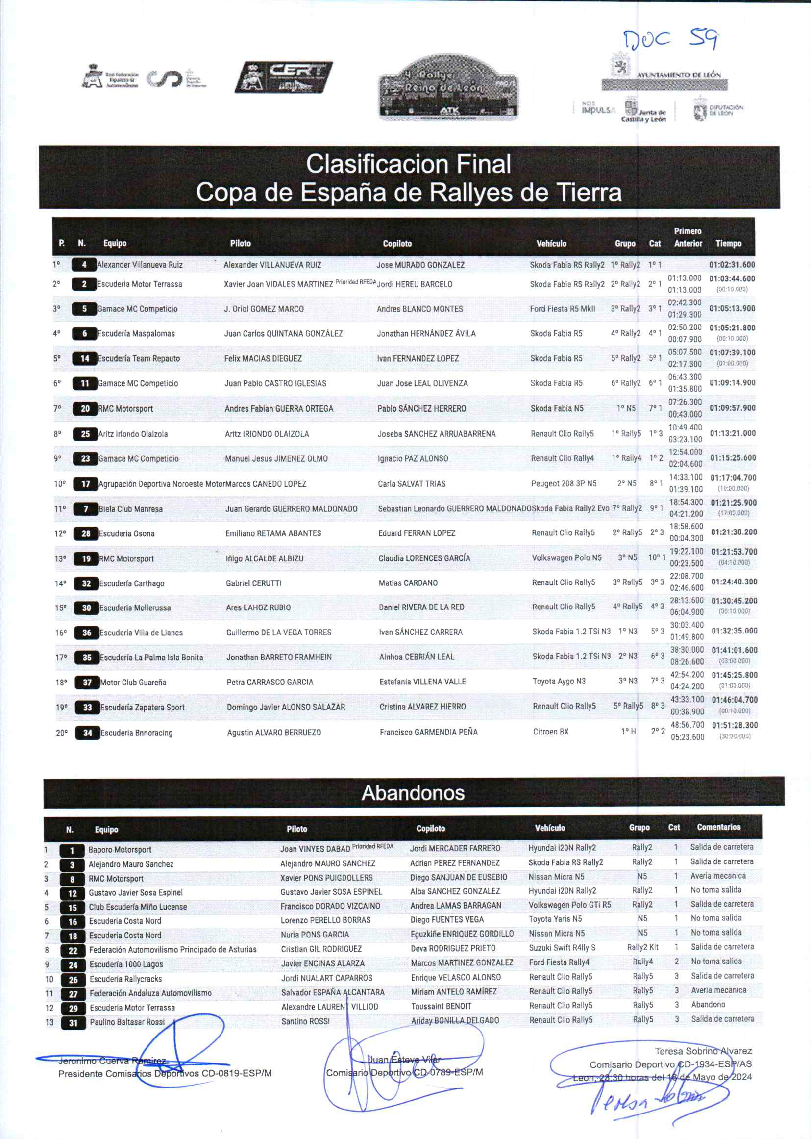 Aquí os dejamos la clasificación final oficial del rally: