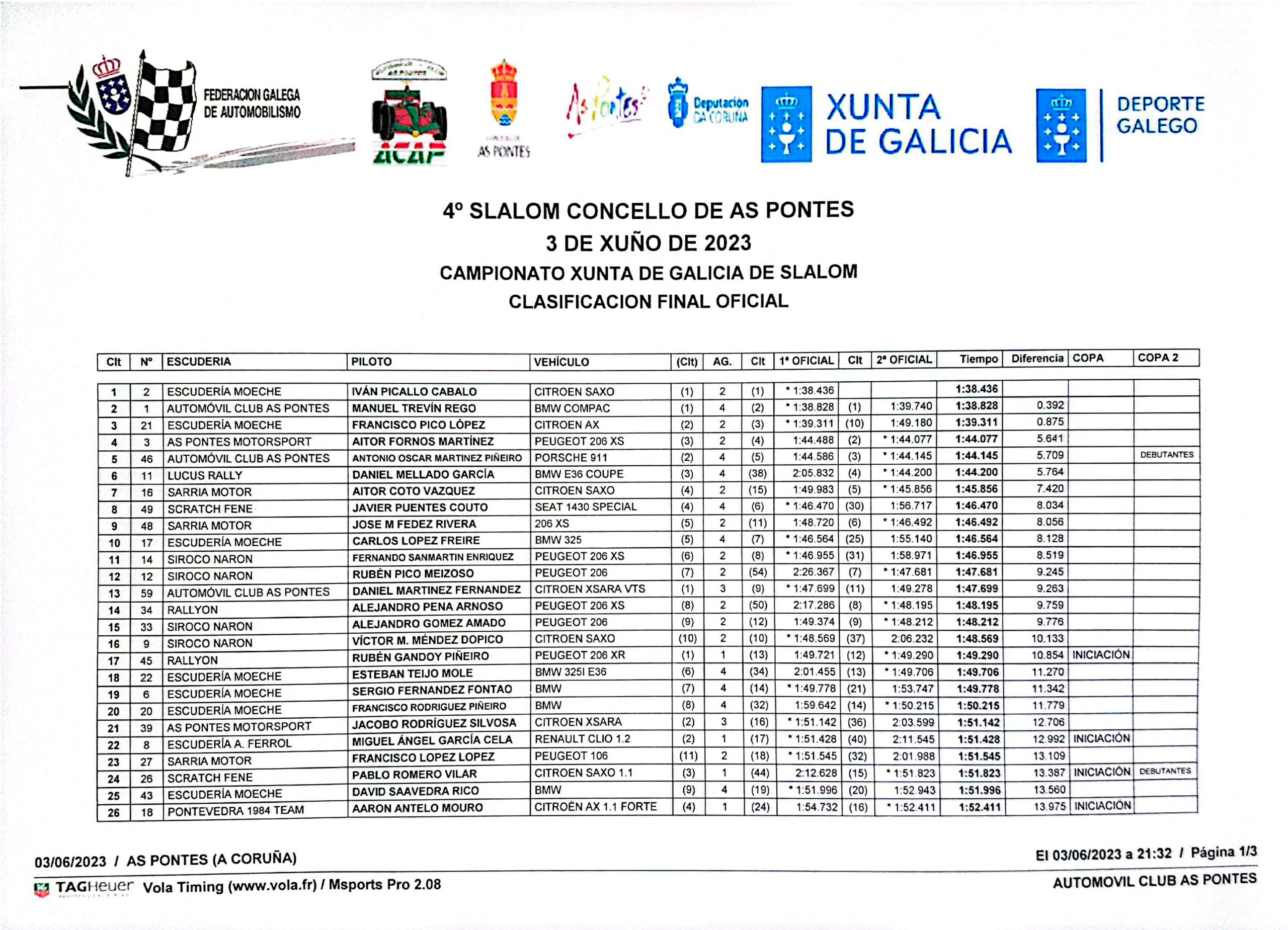 Picallo fue el mejor tras la celebración de las dos mangas oficiales, en lo que es su segundo triunfo de la temporada. El del Citroën superó a su máximo rival actual Manuel Trevín, reeditando las luchas ya vistas en Monterroso y Guitiriz.