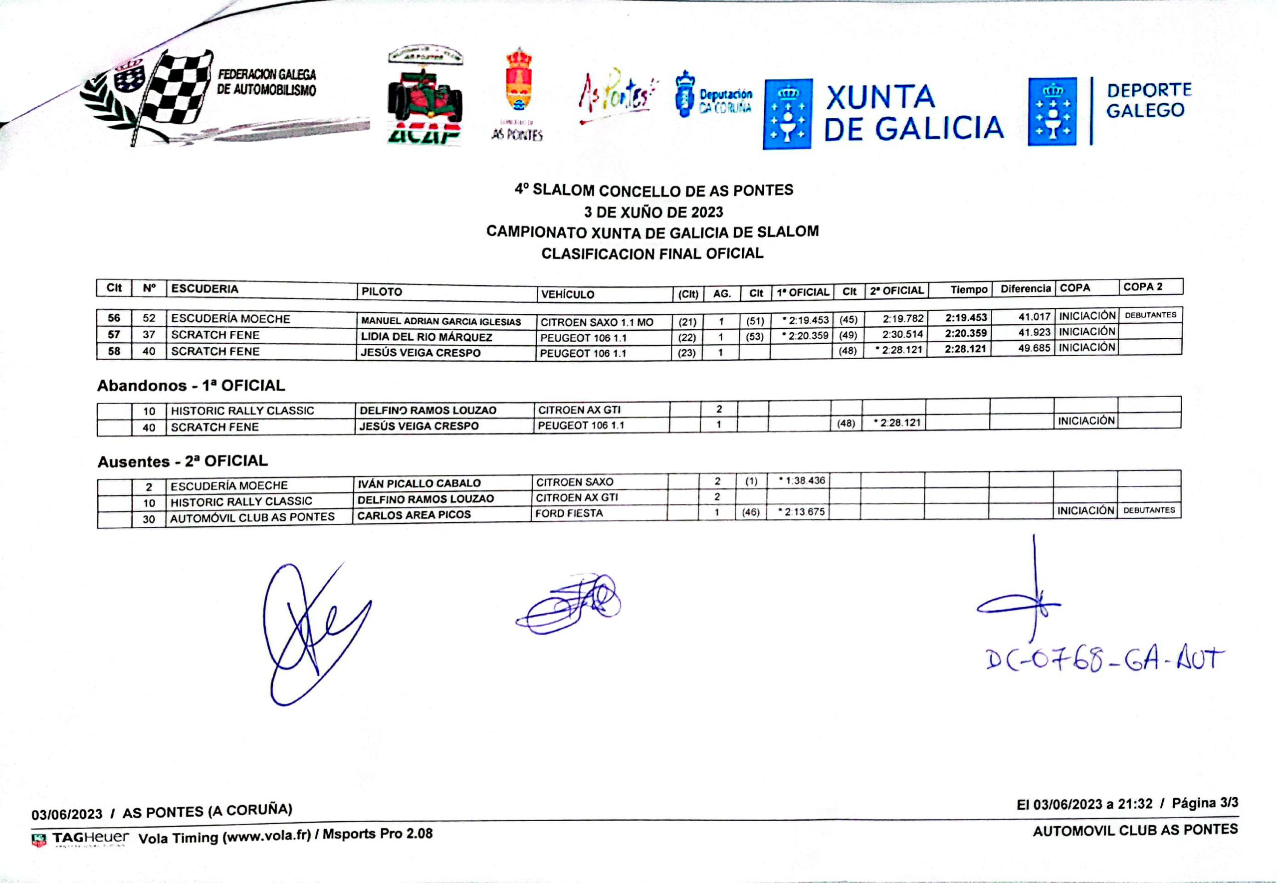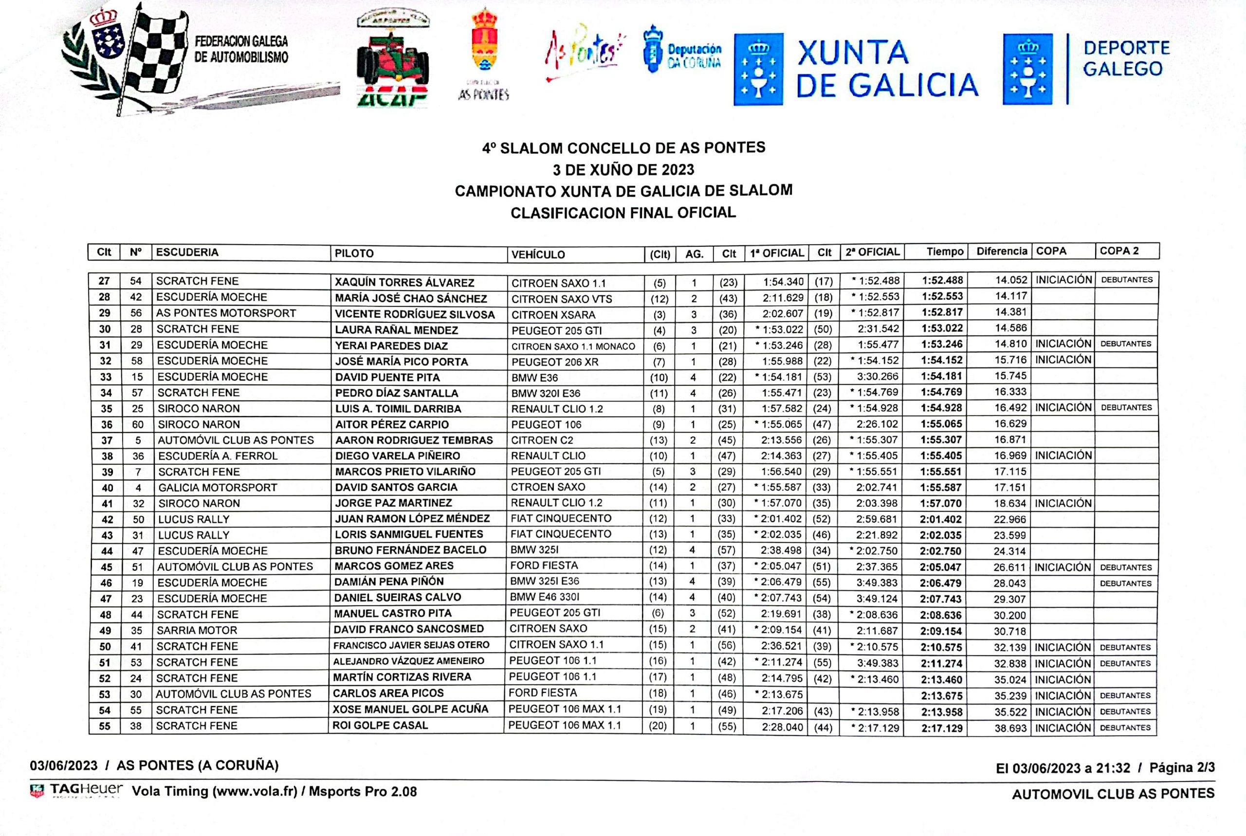 El tercer puesto del podio fue para Francisco Pico, al volante del Citroën Ax. Dentro de la categoría de debutantes, victoria para Antonio Óscar Martínez con el Porsche y en la de iniciación, primera plaza para Rubén Gandoy.