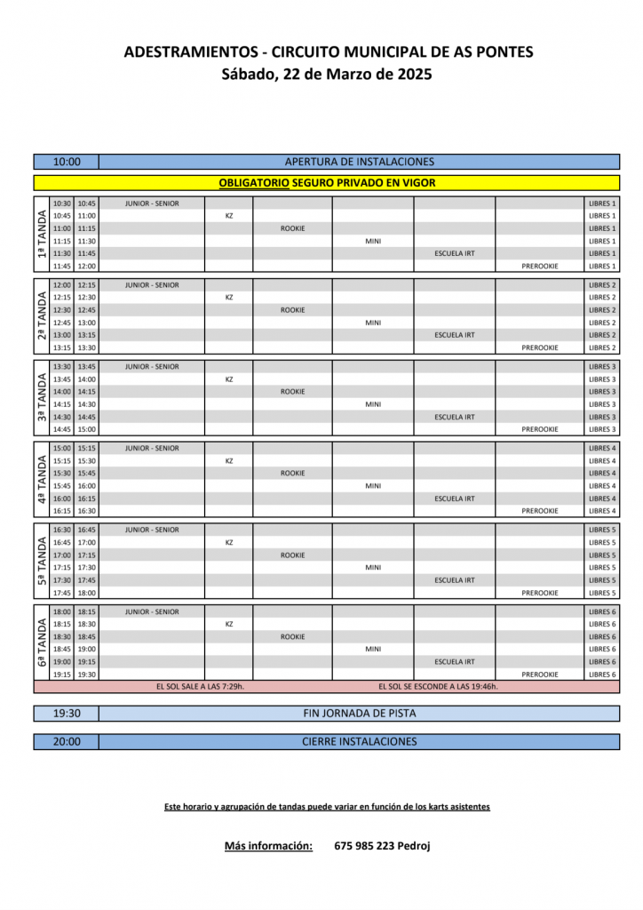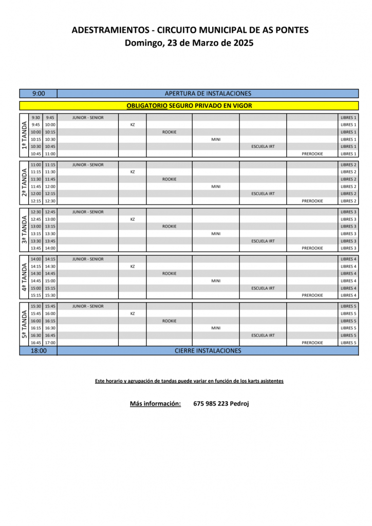 Horario de entrenamientos