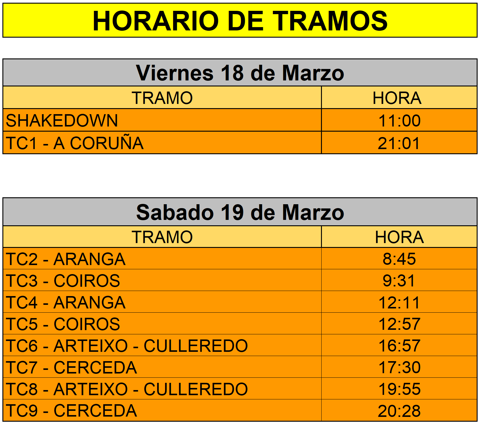 - Horario de Tramos