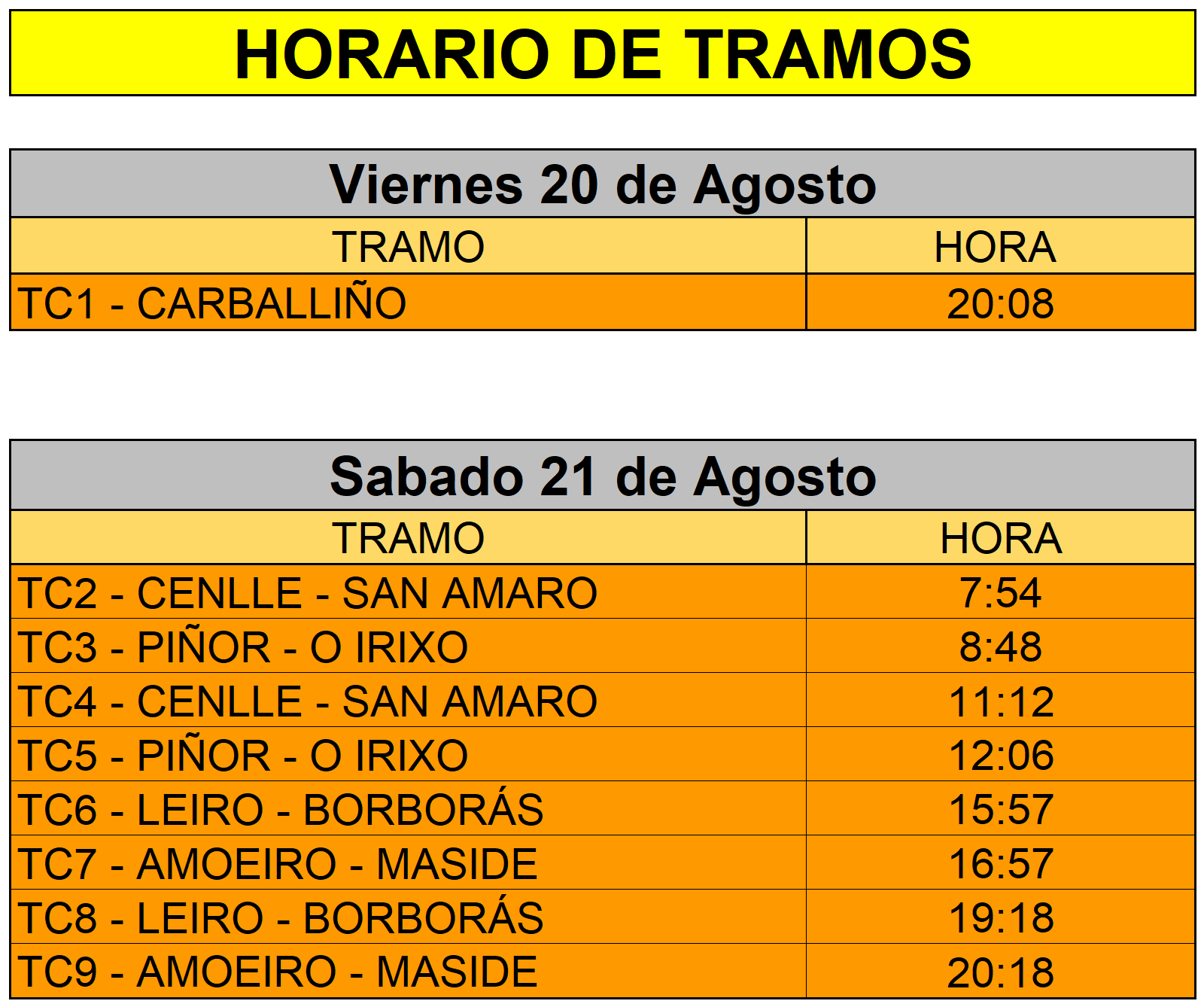 - Horario Tramos