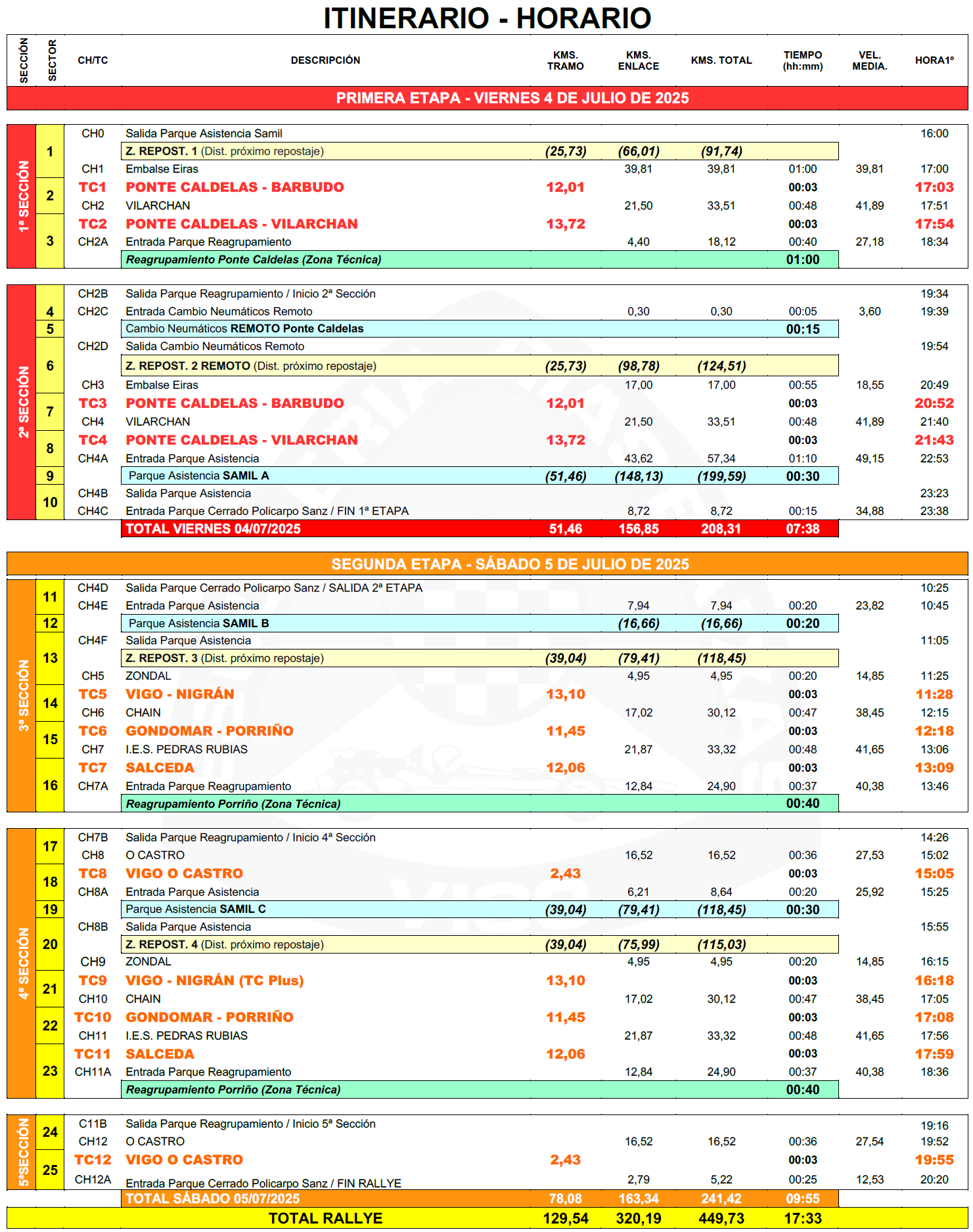 - Itinerario Horario