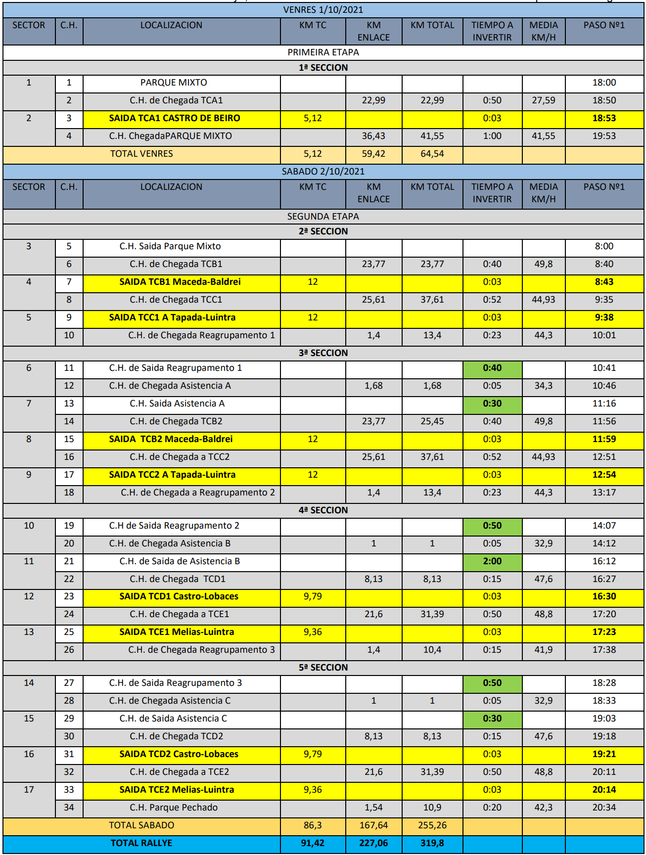 - Horario de Tramos