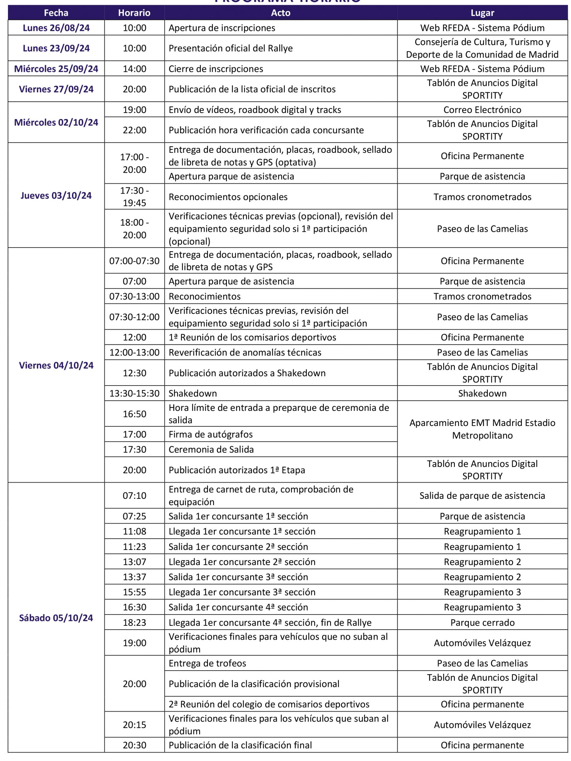 - Programa horario