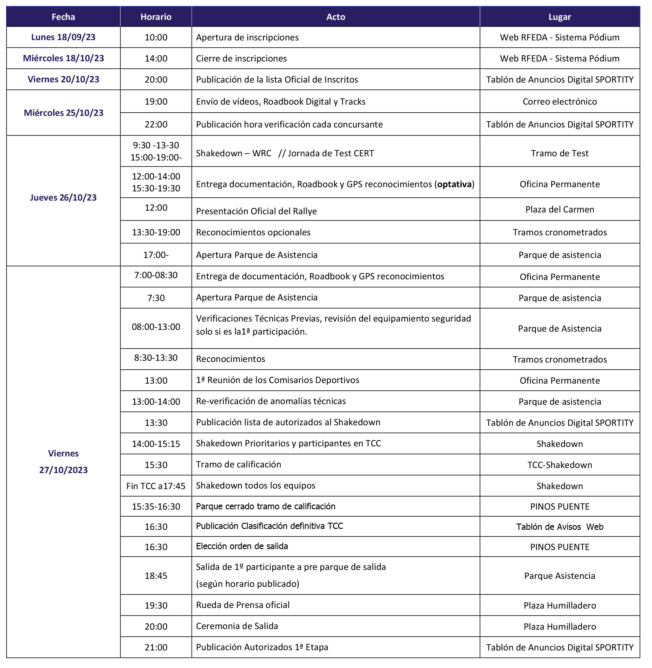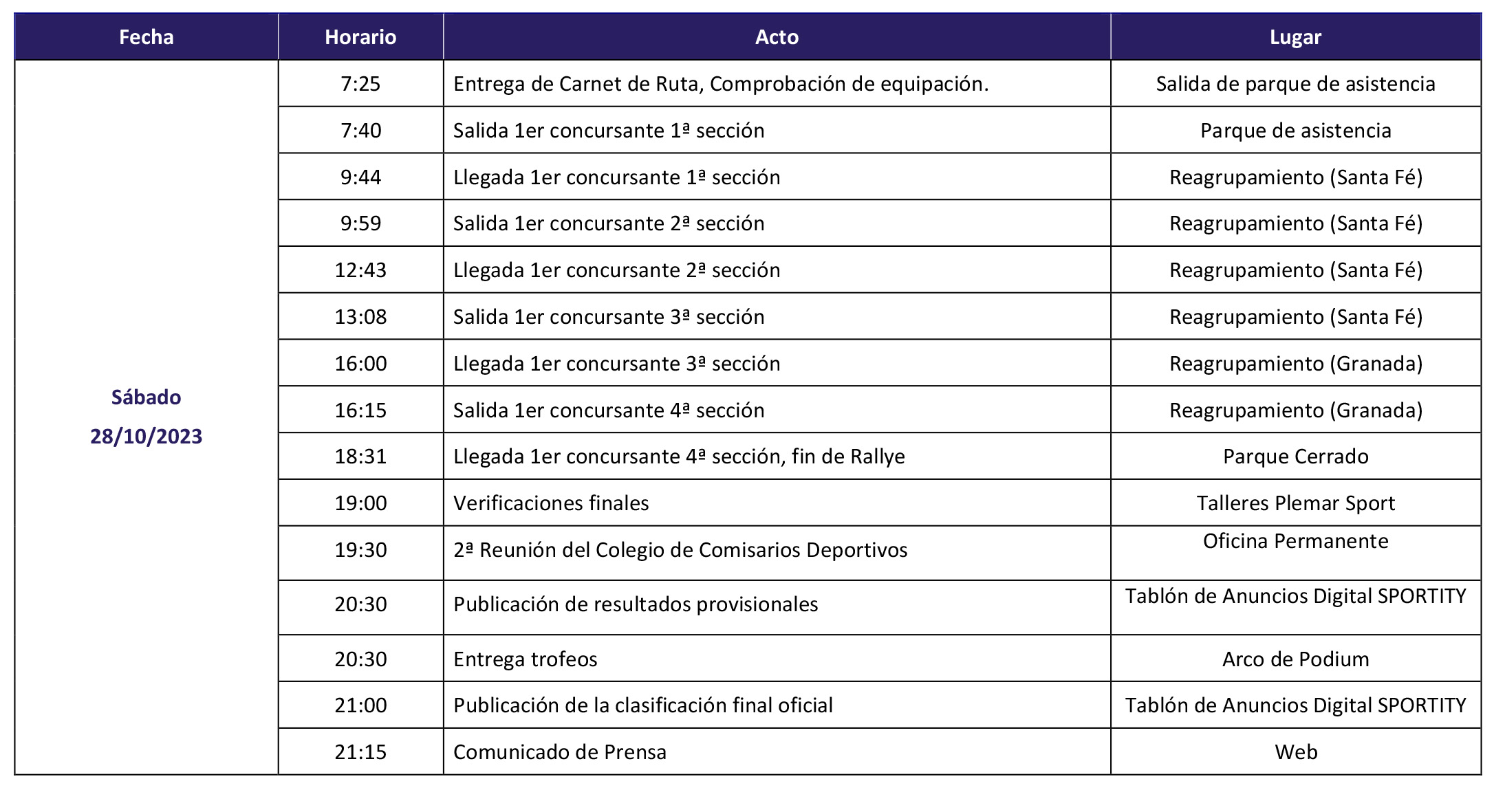 Itinerario Horario