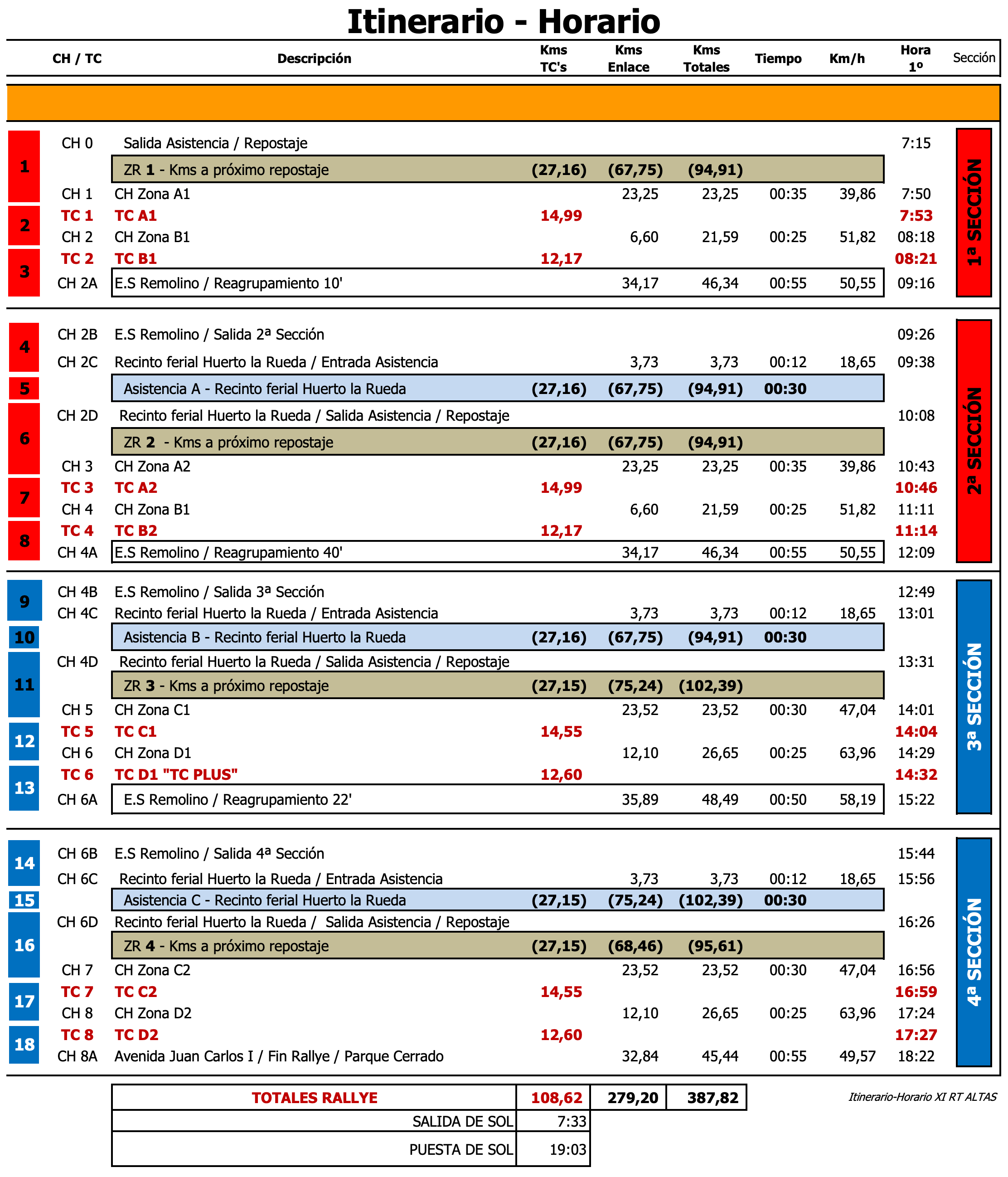 - Itinerario Horario