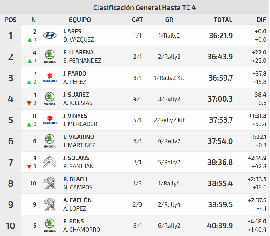 Ivan Ares finaliza la primera etapa del Rally de Ferrol en primera posición, después de que Jose Antonio Suarez perdiera 39 segundos en la segunda pasada por el tramo de Monfero – Monfero.