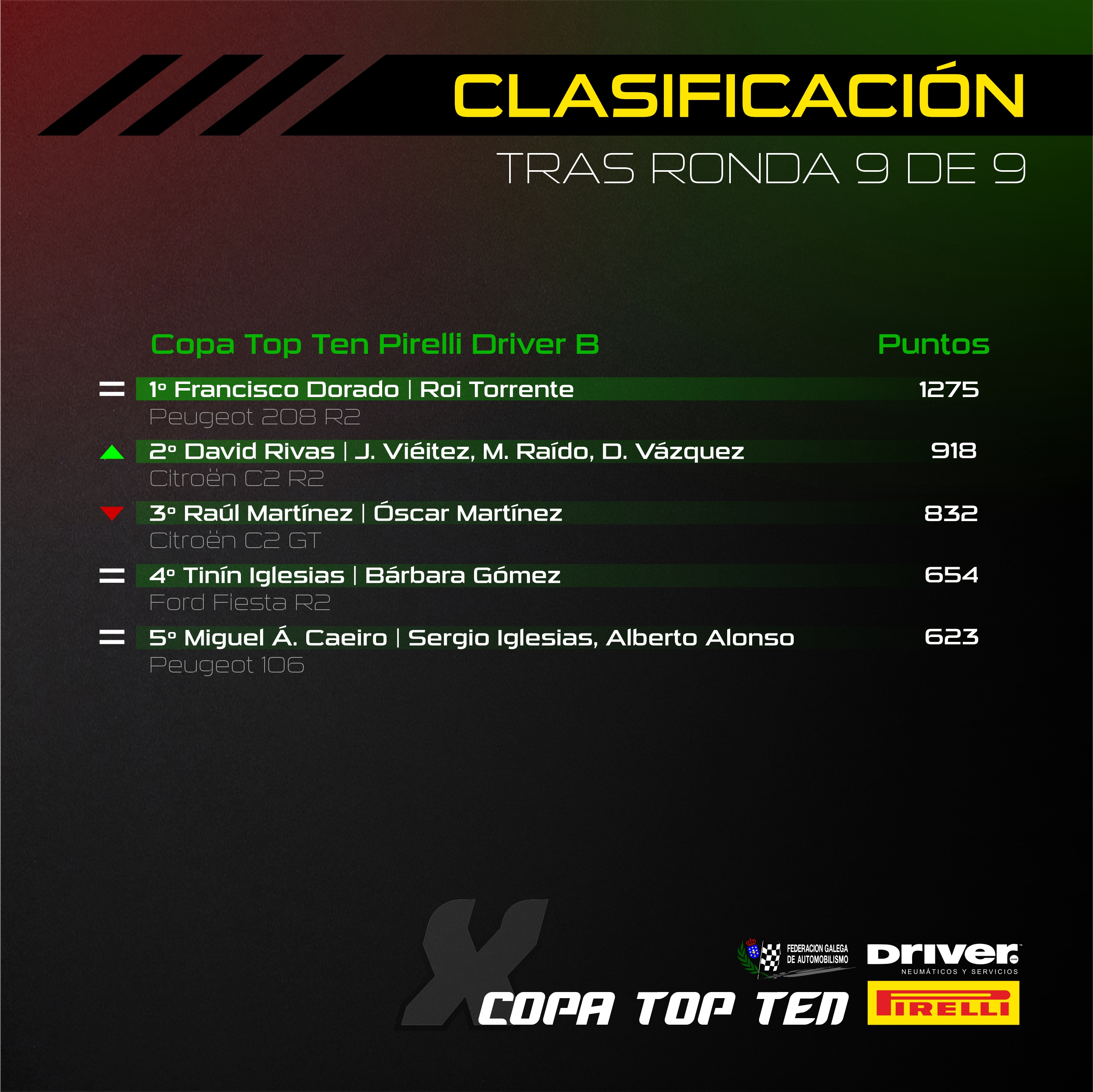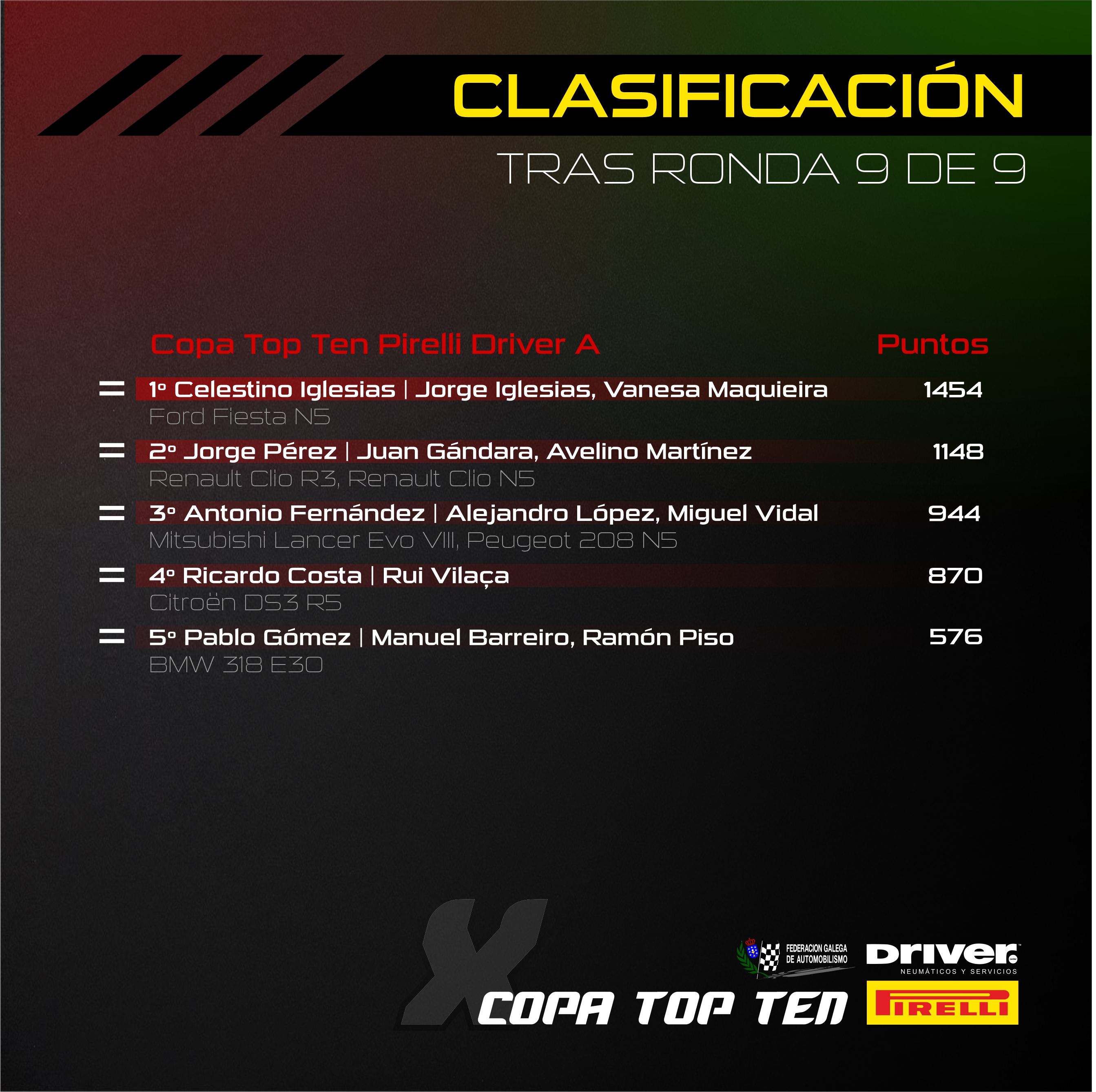 La Copa Top Ten Pirelli Driver A llegaba a la Mariña Lucense pendiente de decidirse, si bien lo único que podía impedir el título de Celestino Iglesias era un abandono de éste. Así que el de Ribadumia tomó cero riesgos para llevar su Fiesta N5 al parque cerrado, mientras por delante José Manuel Lista iba a ponerle las cosas difíciles a Jorge Pérez en la pelea por la victoria.