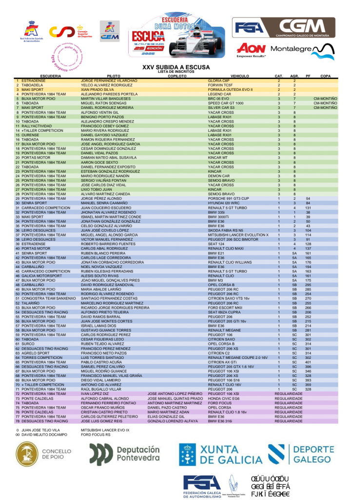 Aquí os traemos la lista de inscritos oficial de la Subida a Escusa 2025, prueba puntuable tanto para el Campeonato Gallego de Montaña como para la Copa de España de España de la especialidad.