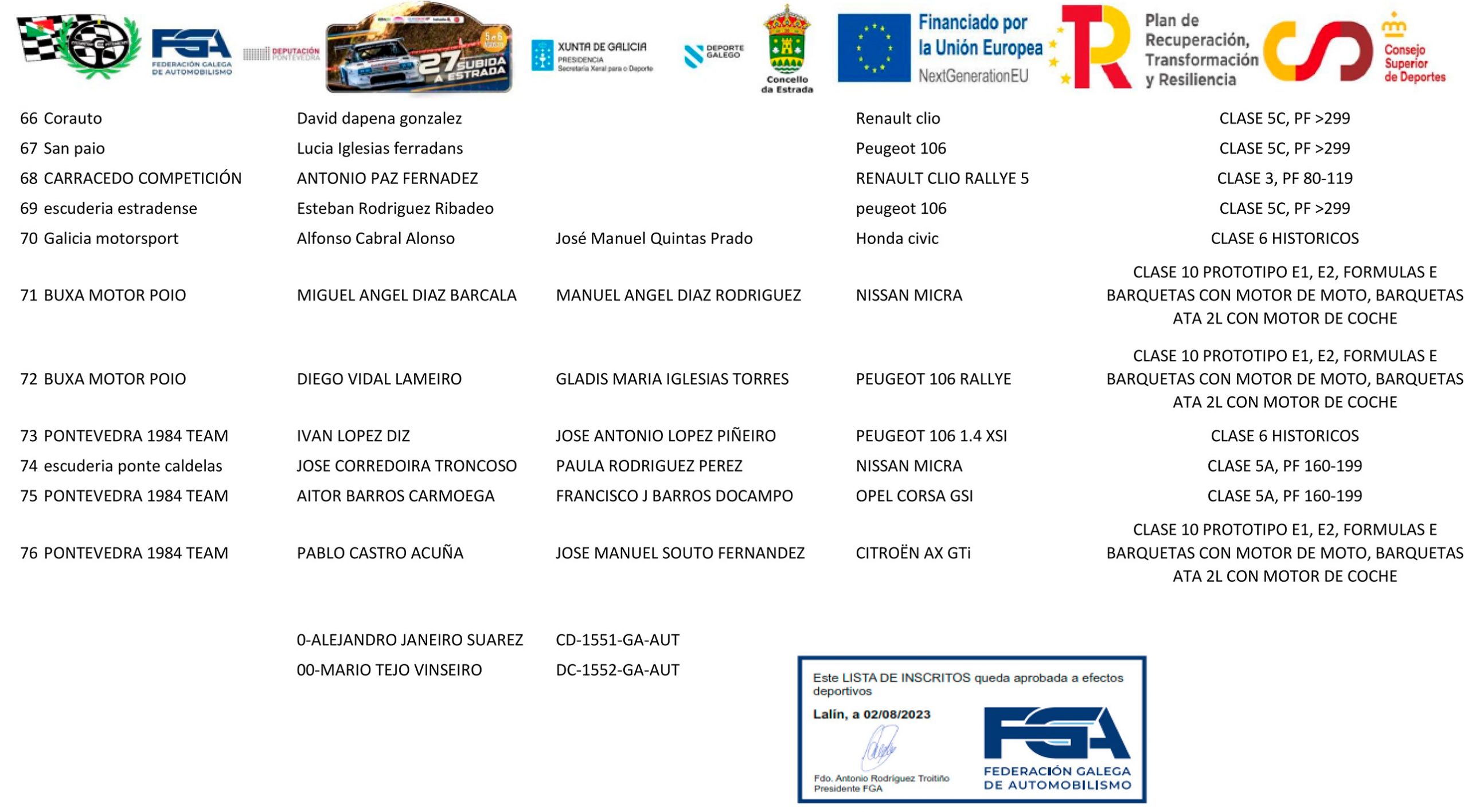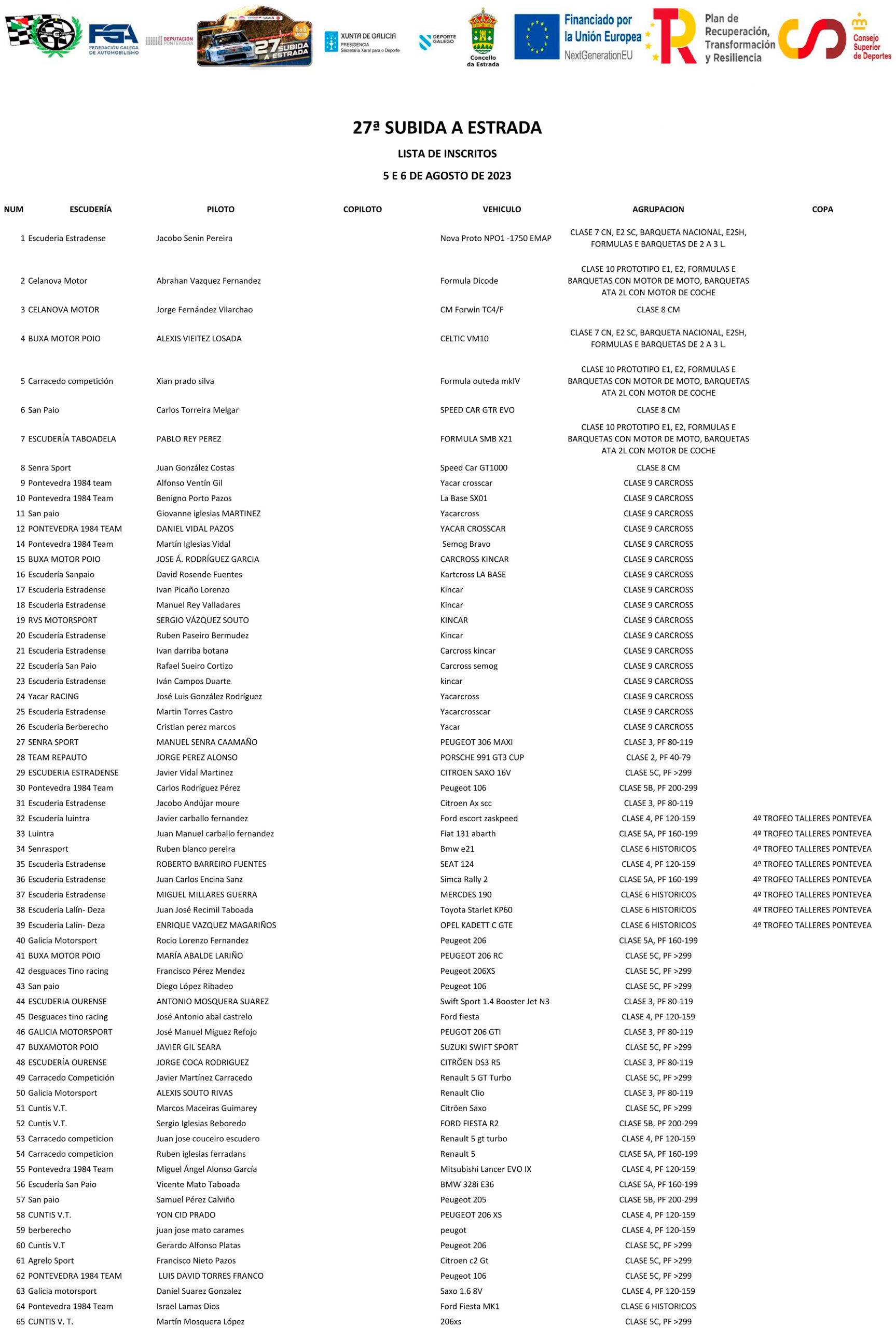 Aquí os dejamos la lista de inscritos oficial: