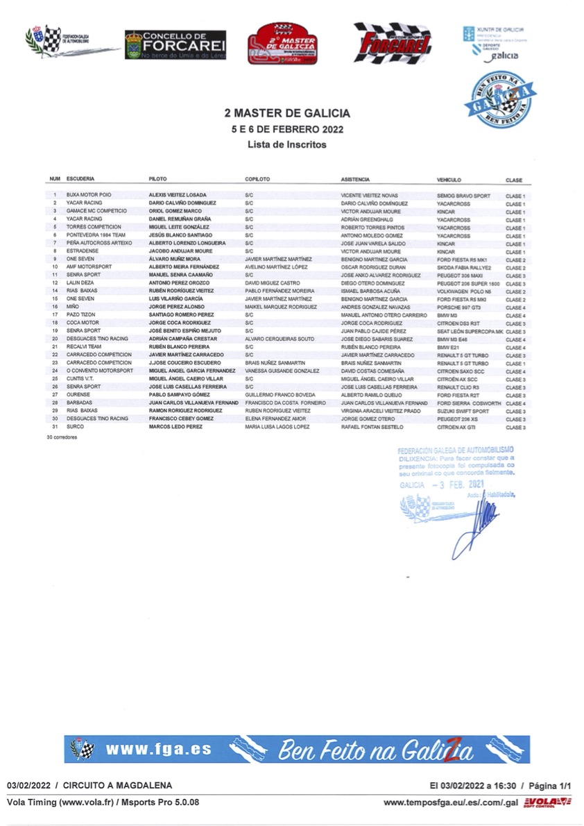 Ya tenemos disponible la lista de inscritos de la primera prueba del motor de este año 2022 en Galicia