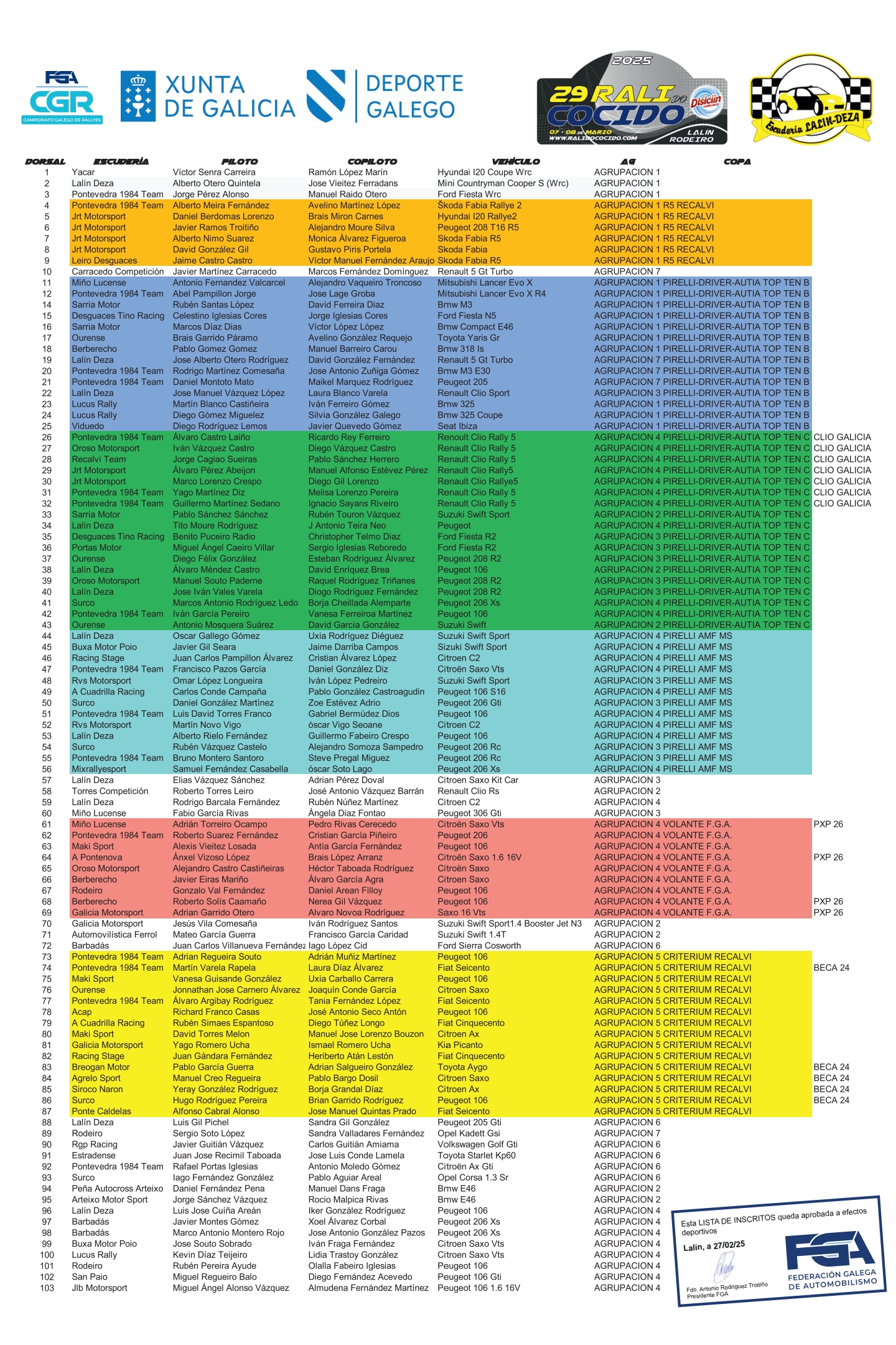 Ya tenemos disponible la primera lista de inscritos del Campeonato Gallego de Rallyes 2025, el Rali do Cocido.