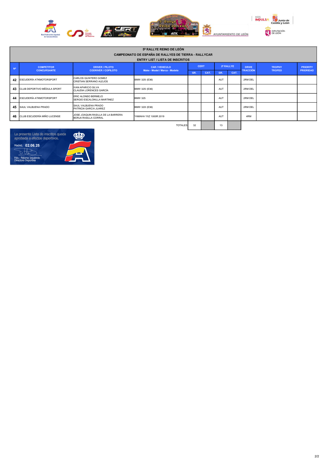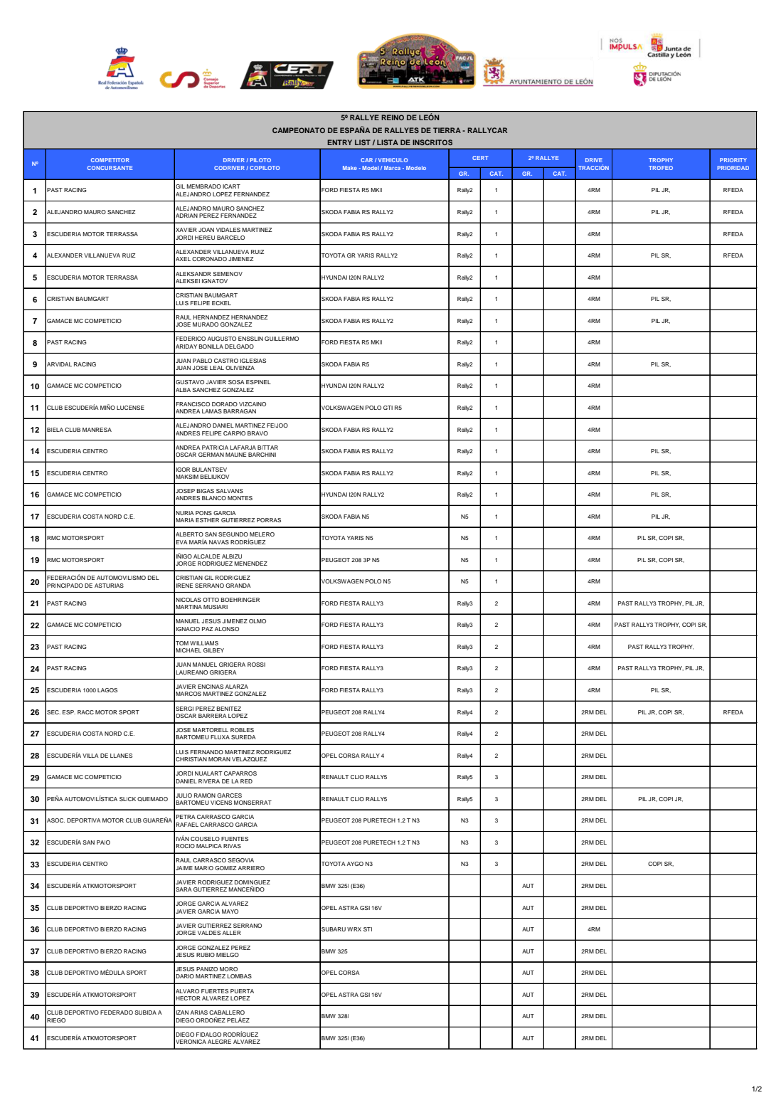 Ya tenemos disponible la lista de inscritos oficial del Rally Reino de Leon 2025, prueba puntuable para la Copa de España de Rallyes de Tierra.