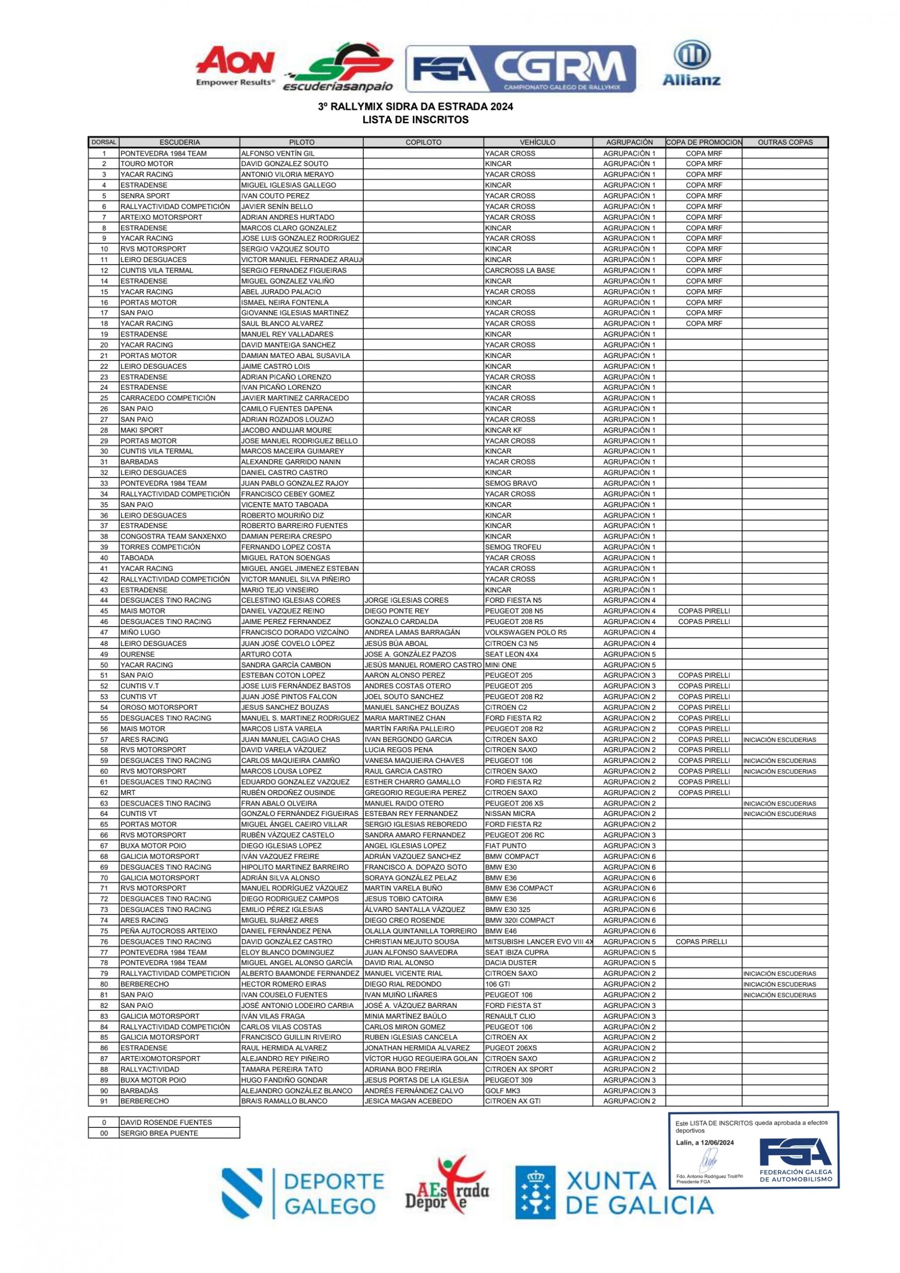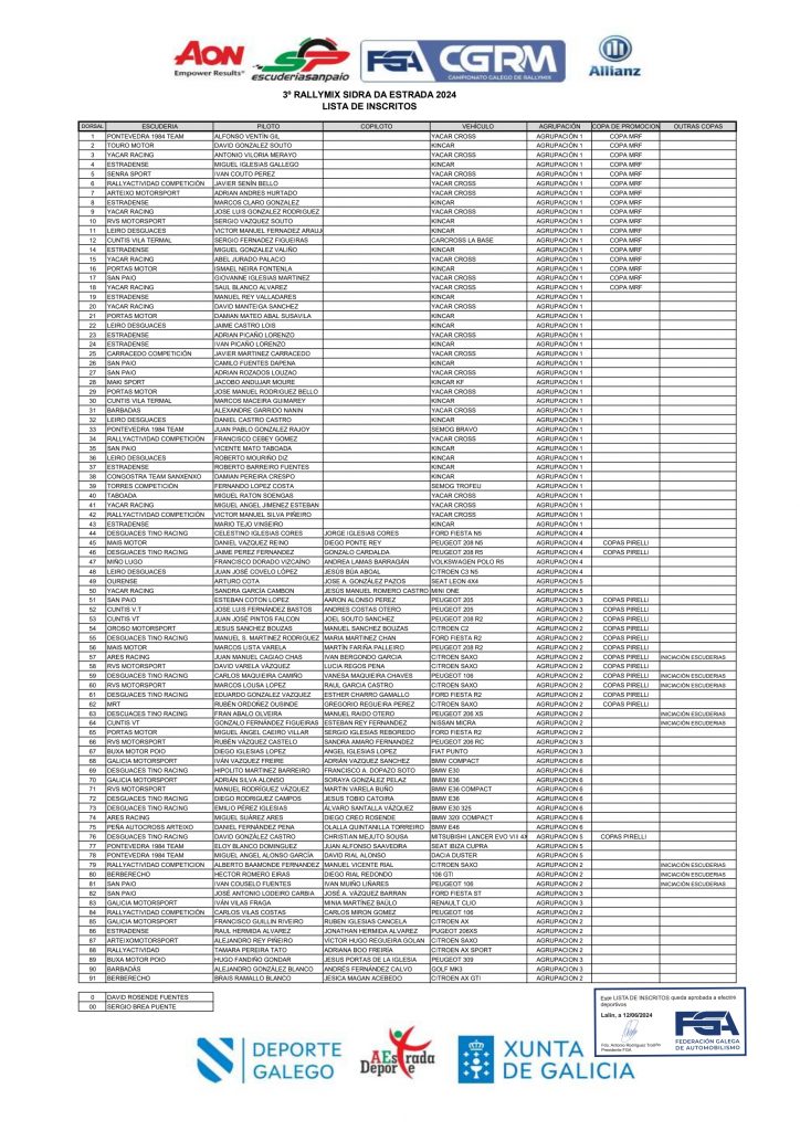 Ya tenemos disponible la lista de inscritos oficial del Rallymix Sidra da Estrada 2024, prueba puntuable para el Campeonato Gallego de la especialidad.