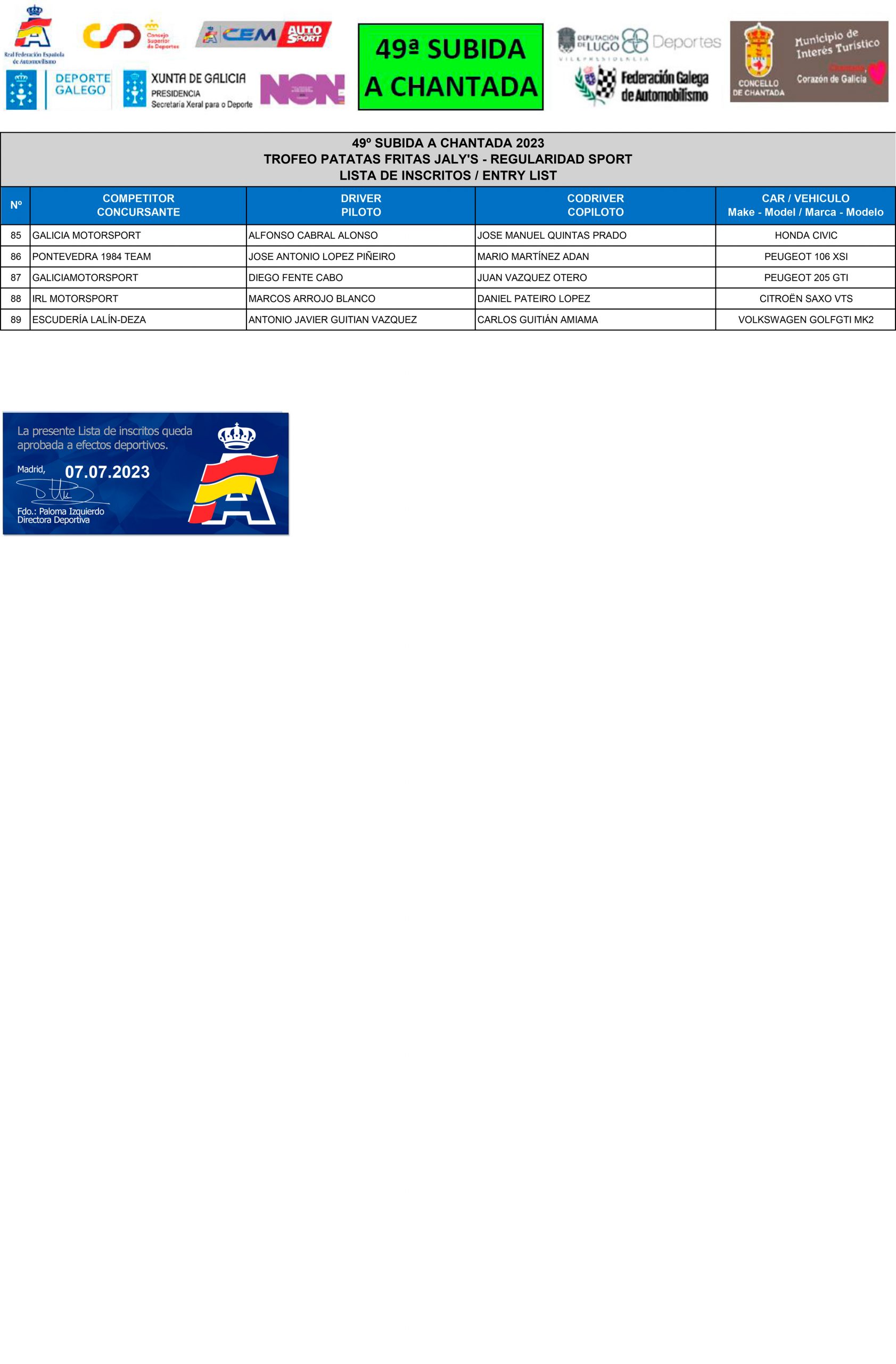 Aquí os dejamos la Lista de inscritos oficial de la Subida a Chantada 20223