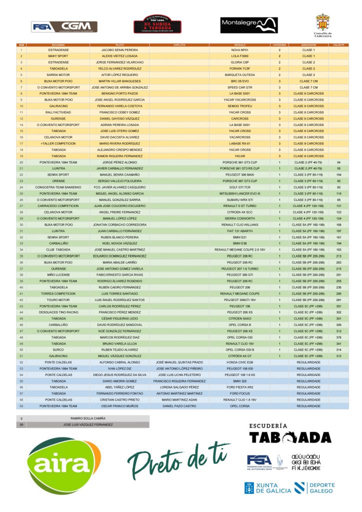 Ya tenemos la lista de inscritos oficial de la Subida a Taboada 2025, prueba que inaugura el Campeonato Gallego de Montaña.