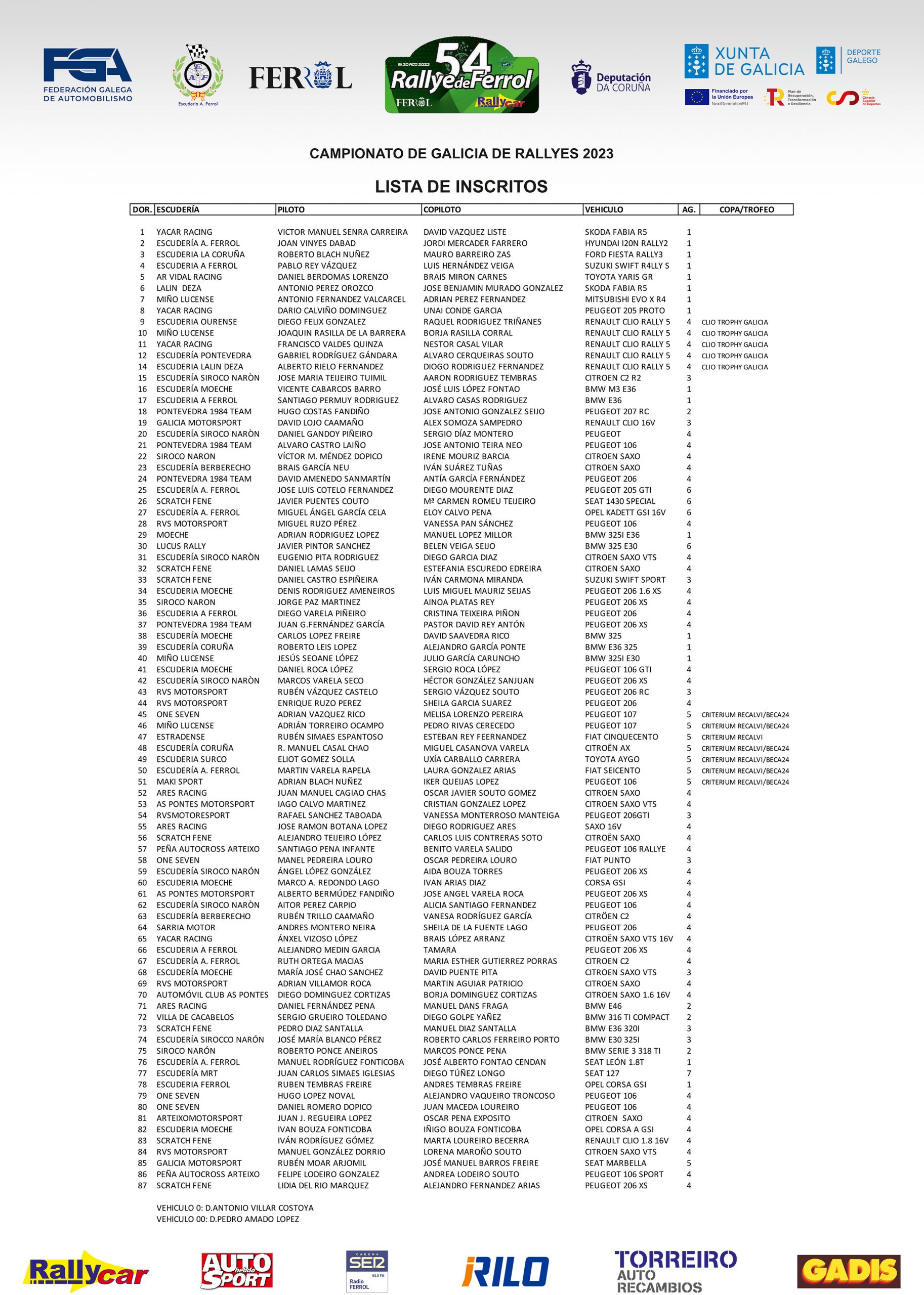 Aquí os traemos la lista de inscritos oficial del Rally de Ferrol 2023, prueba que este año puntúa para el Campeonato Gallego de Rallyes.