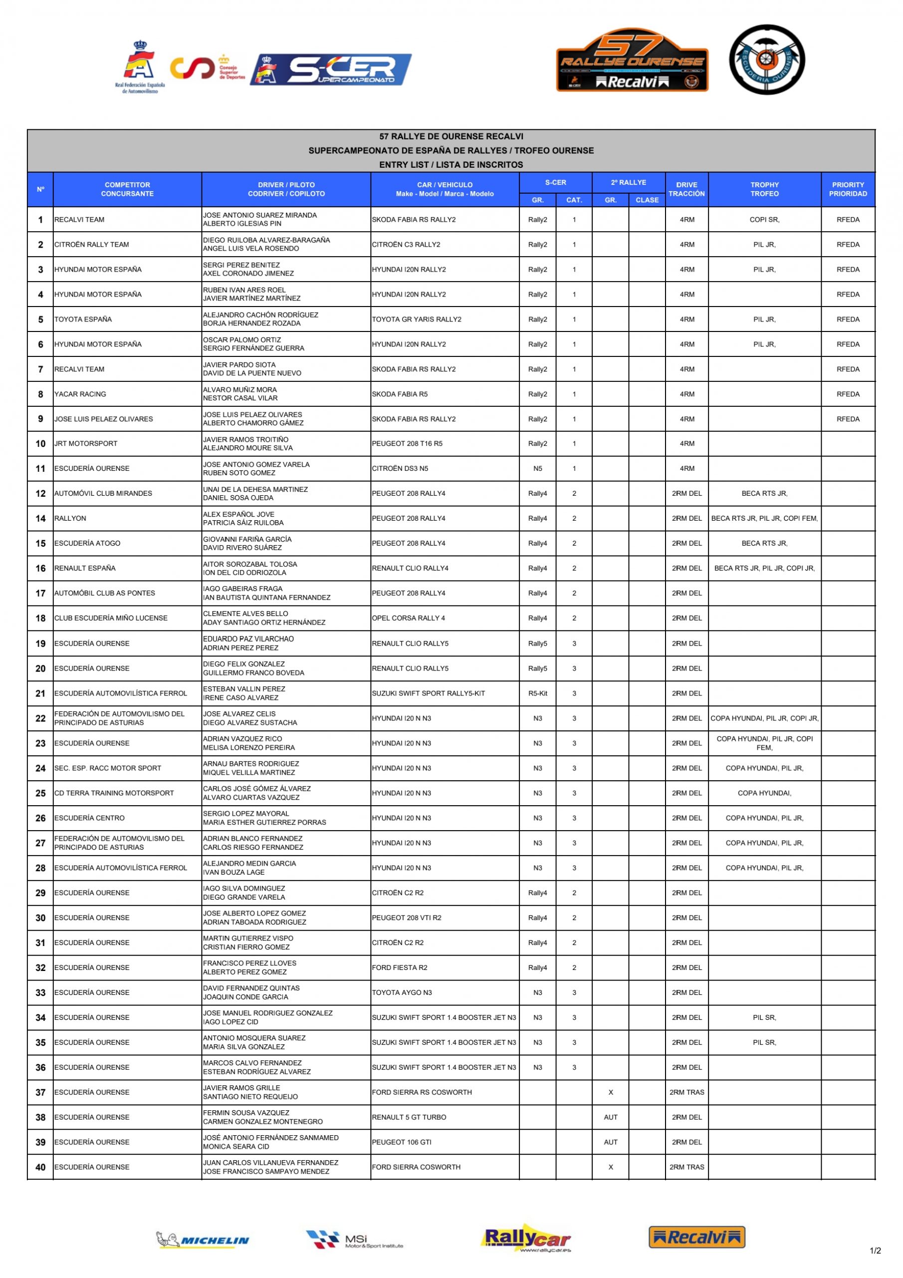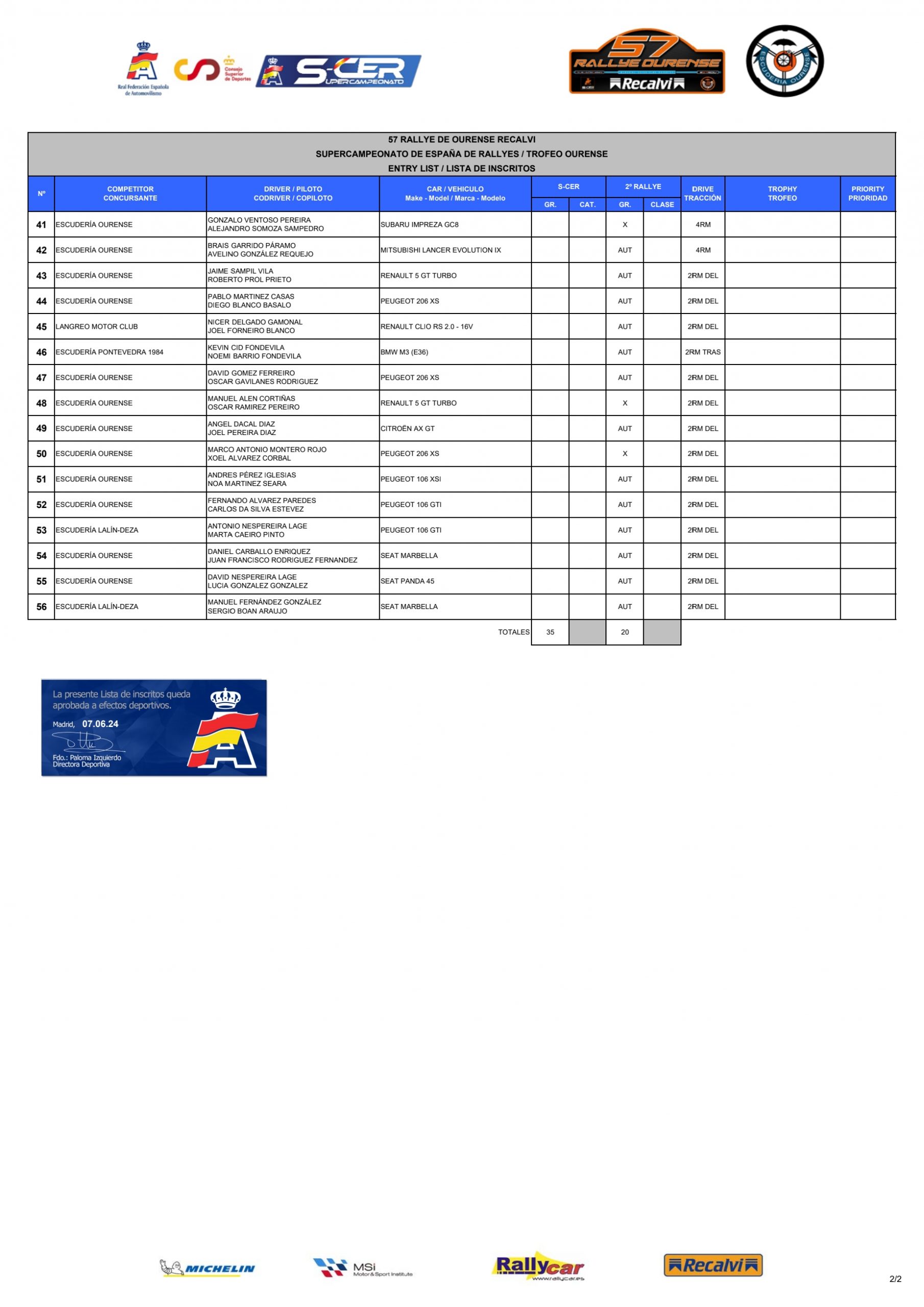 Ya tenemos disponible la lista de inscritos oficial del Rally de Ourense 2024, prueba puntuable para el Supercampeonato de España de Rallyes.
