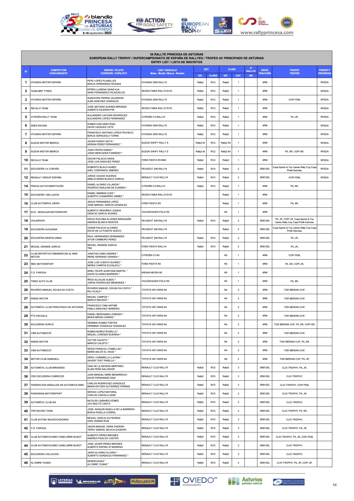 Lista de inscritos oficial del Rally Princesa de Asturias 2022