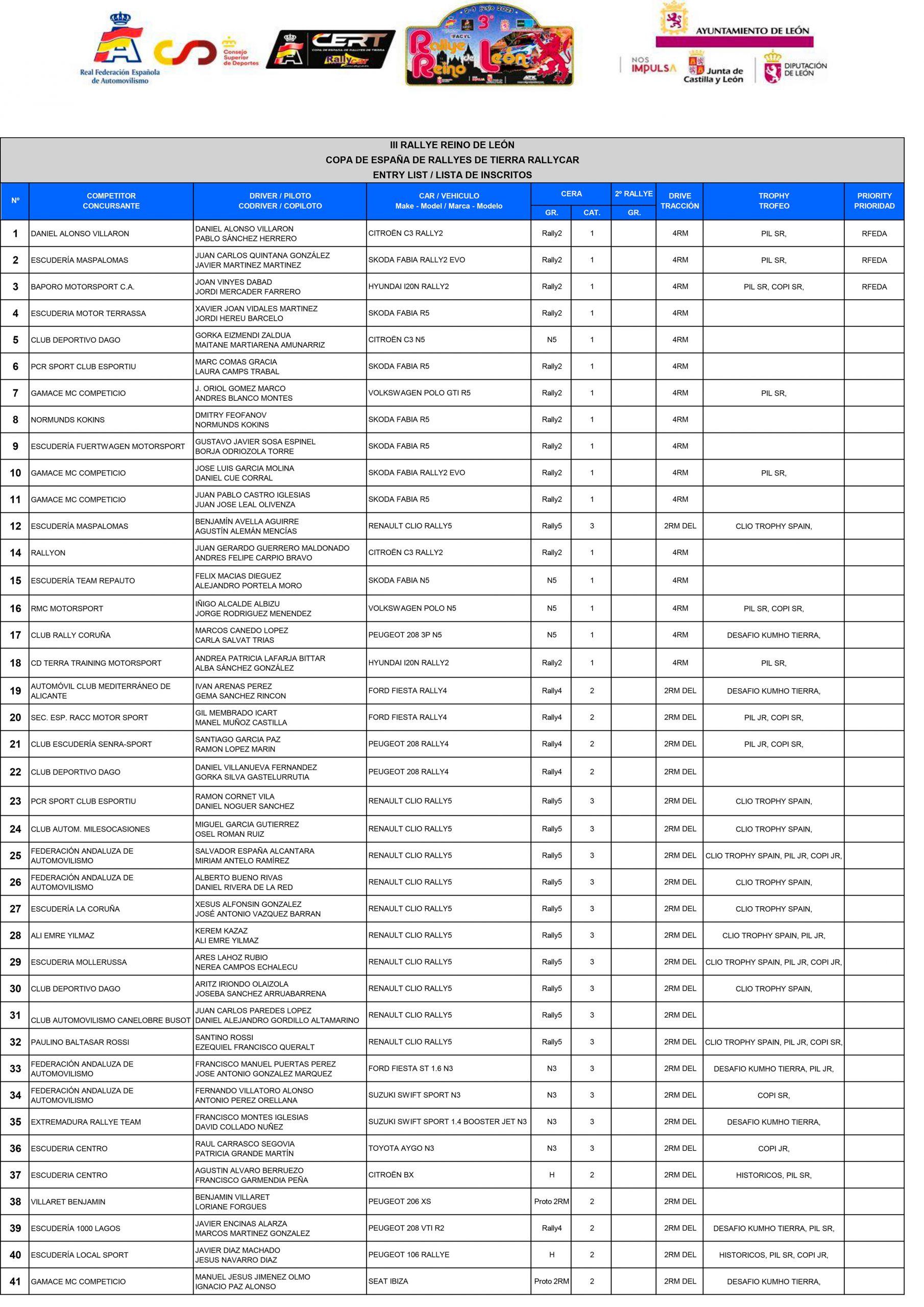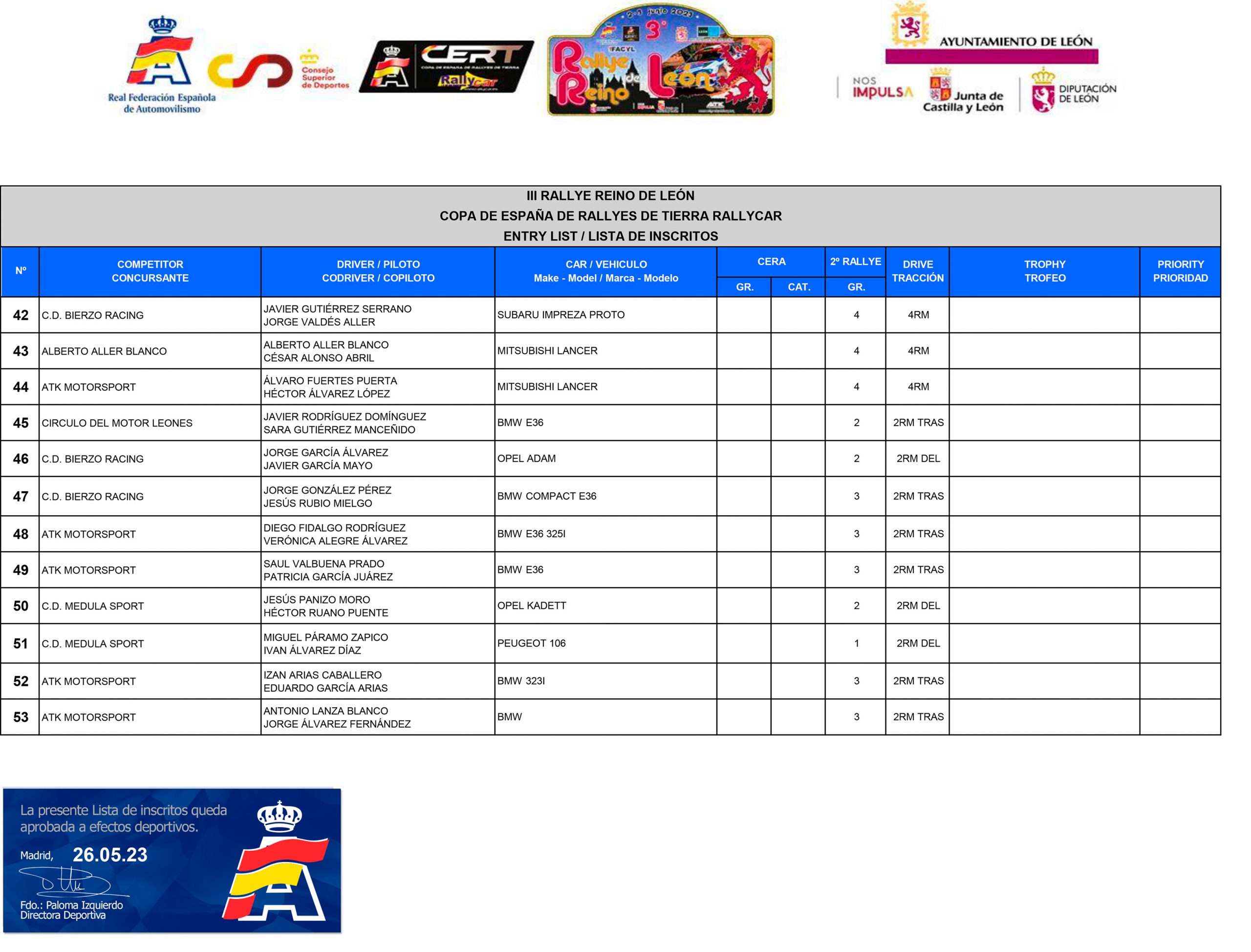 El Rally Reino de León se celebrará del 2 al 4 de junio de 2023 en la localidad de León. La prueba, organizada por la escudería ATK Motorsport, es puntuable para el Copa de España de Rallyes de Tierra.