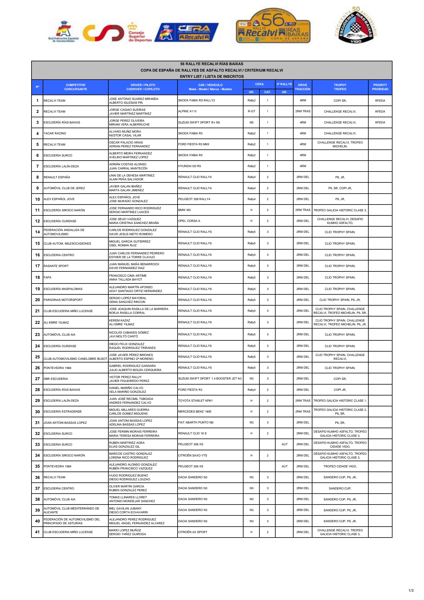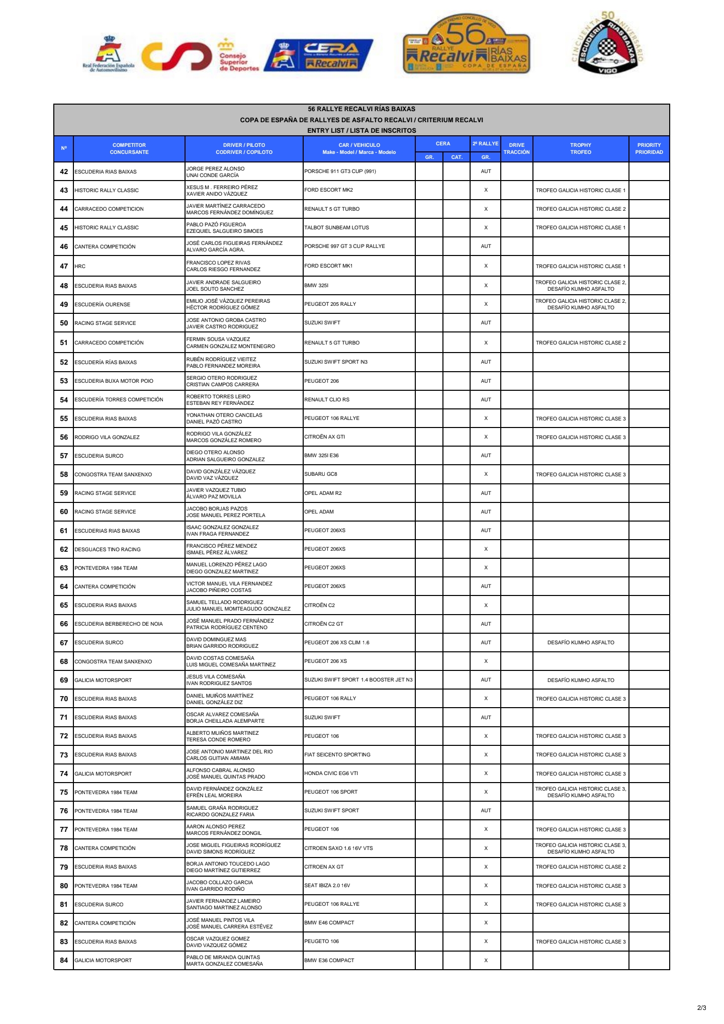 El 56 Rallye Recalvi Rías Baixas se celebrará los días 26 y 27 de mayo de 2023 como la segunda prueba de la Copa de España de Asfalto y el Trofeo Galicia Histórico. La prueba, organizada por la Escudería Rías Baixas, tendrá su salida en Vigo y recorrerá tramos clásicos del sur de la provincia de Pontevedra.