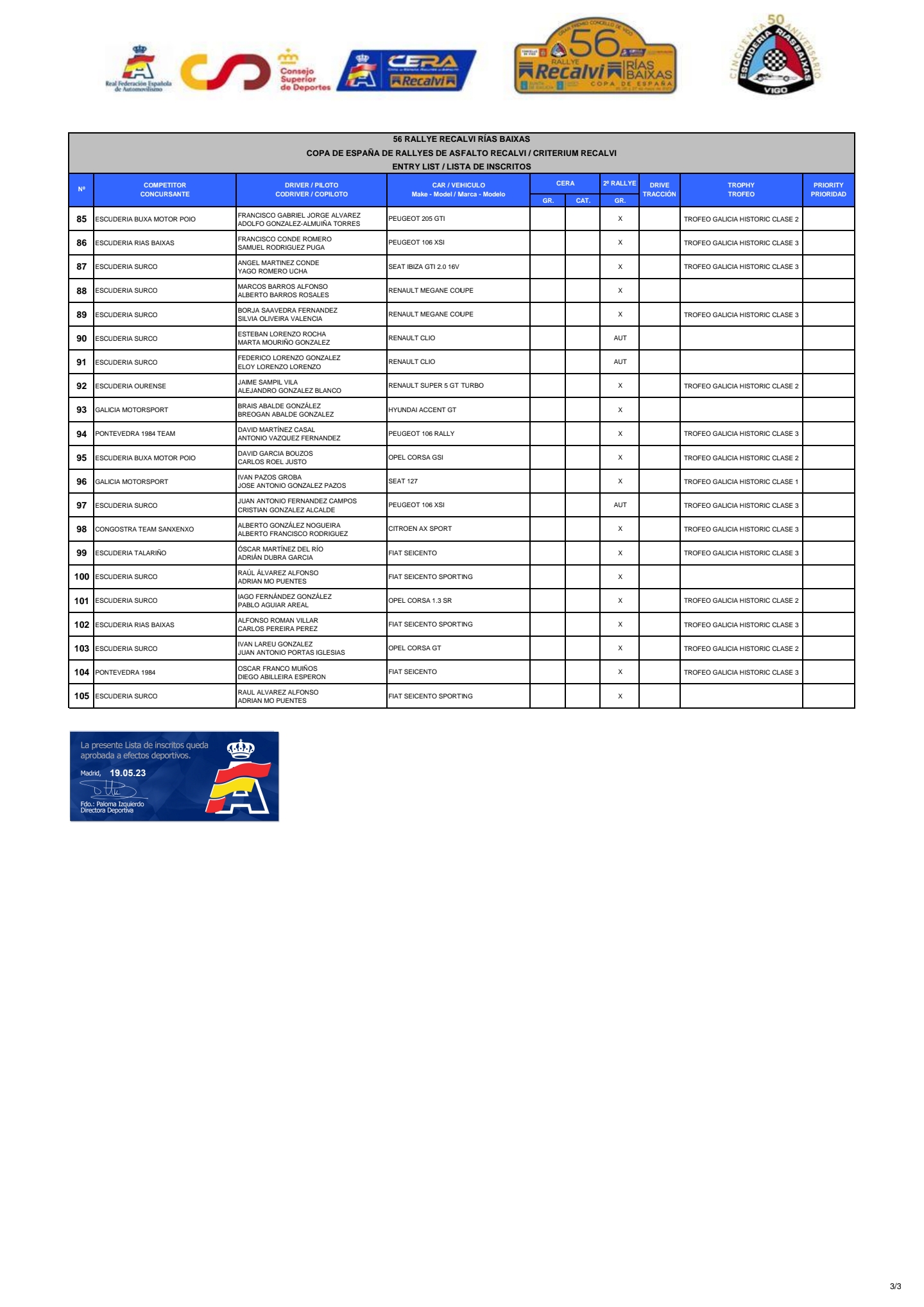 Aquí os dejamos la lista de inscritos oficial: