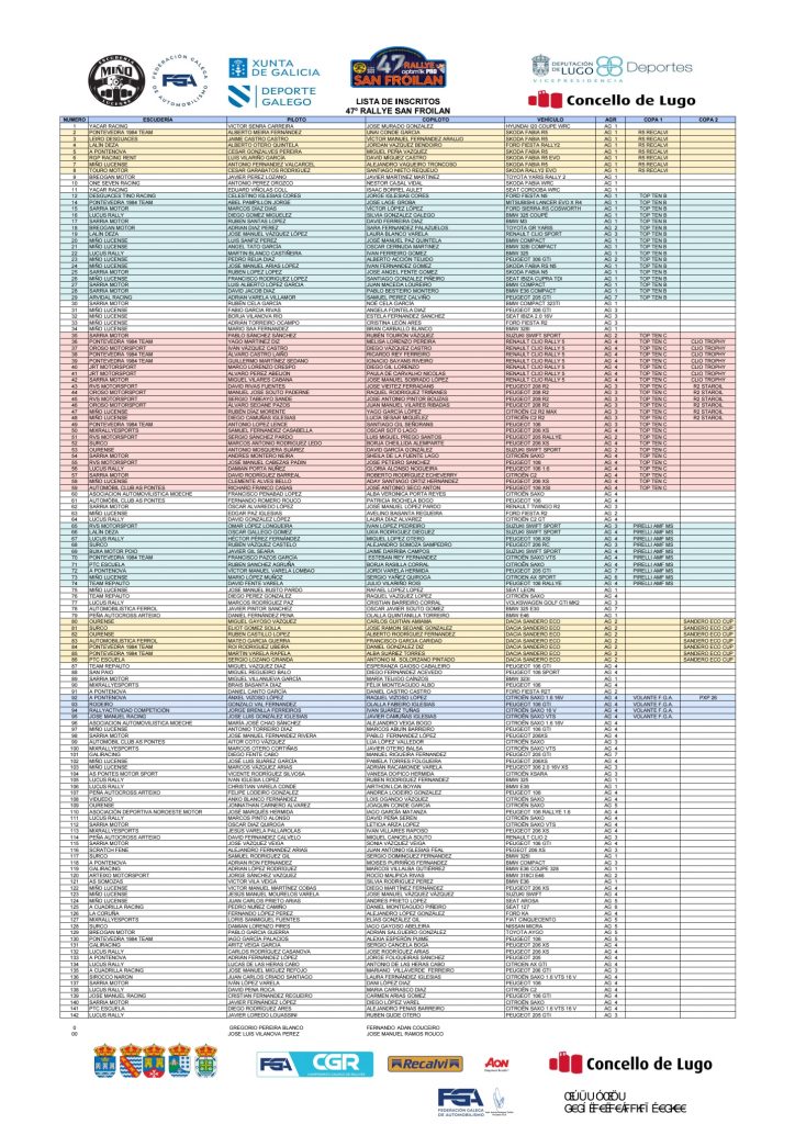 Aquí os traemos la lista de inscritos oficial del Rally San Froilán 2025, prueba puntuable para el Campeonato Gallego de Rallyes.