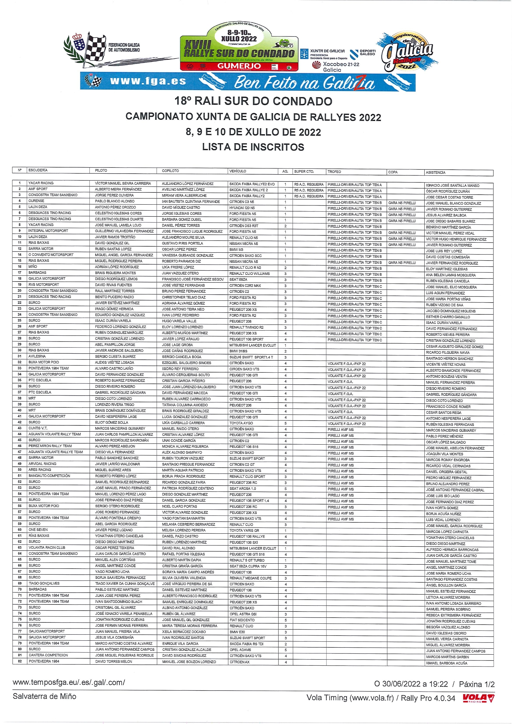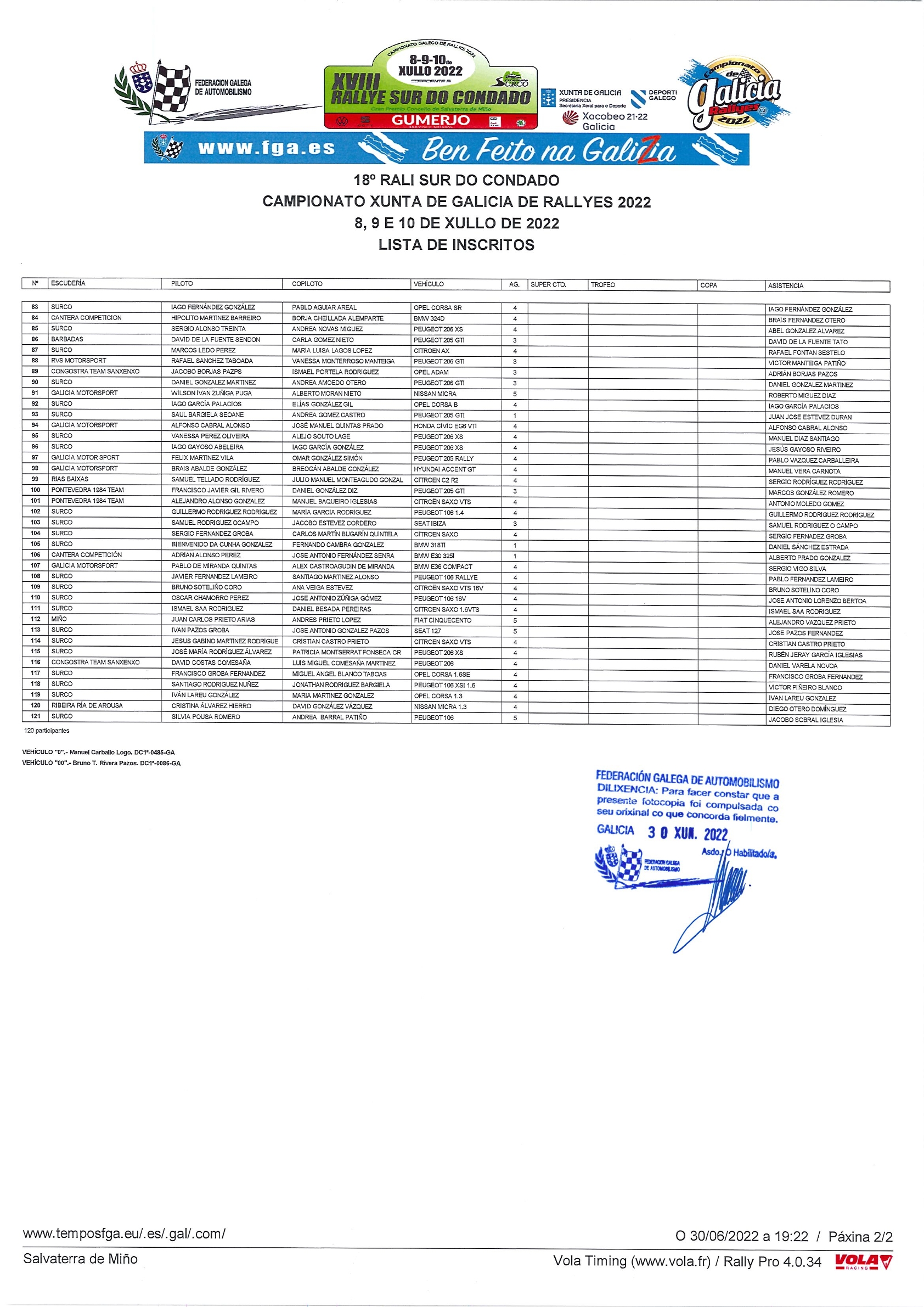 Aquí os traemos la lista de inscritos oficial del Rally Sur do Condado 2022, prueba puntuable para el campeonato gallego de rallyes.