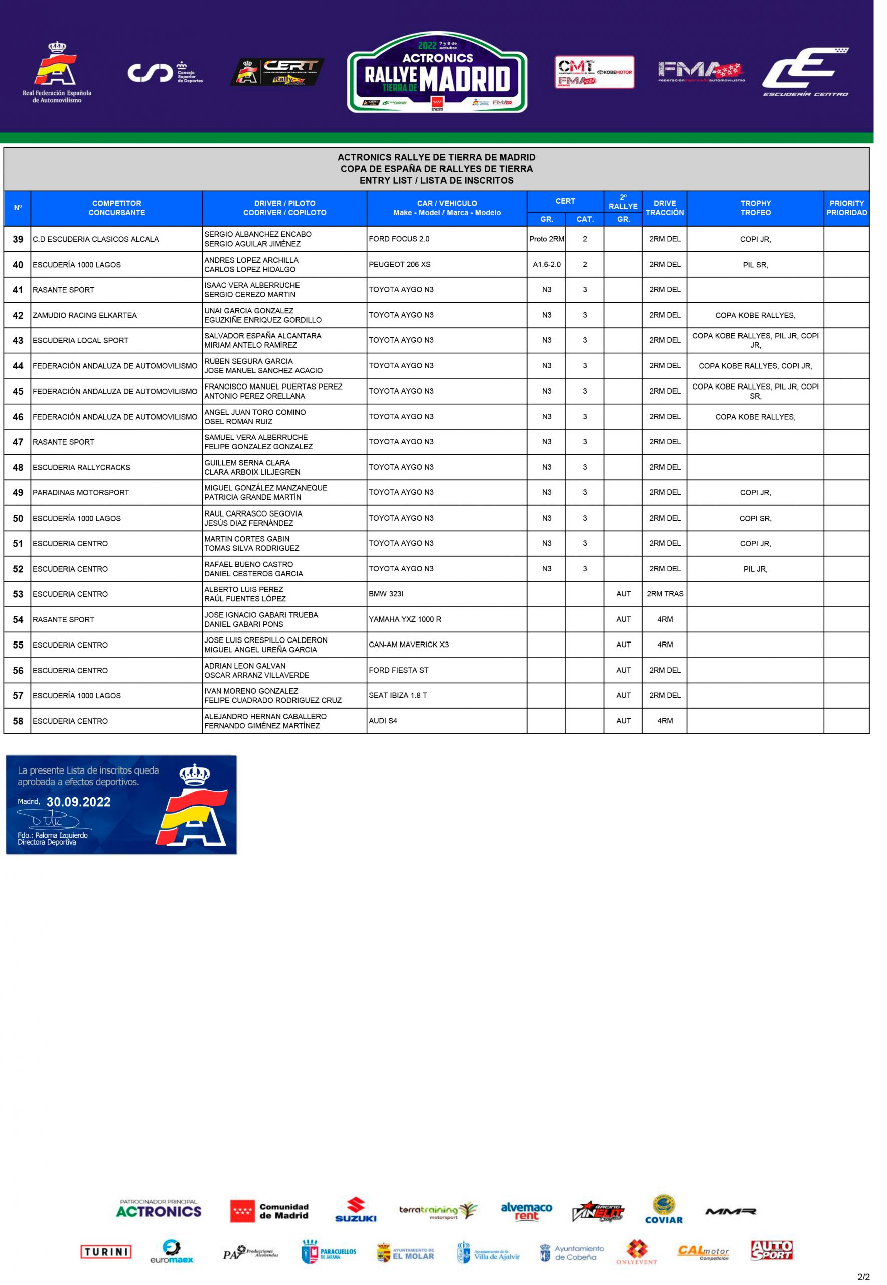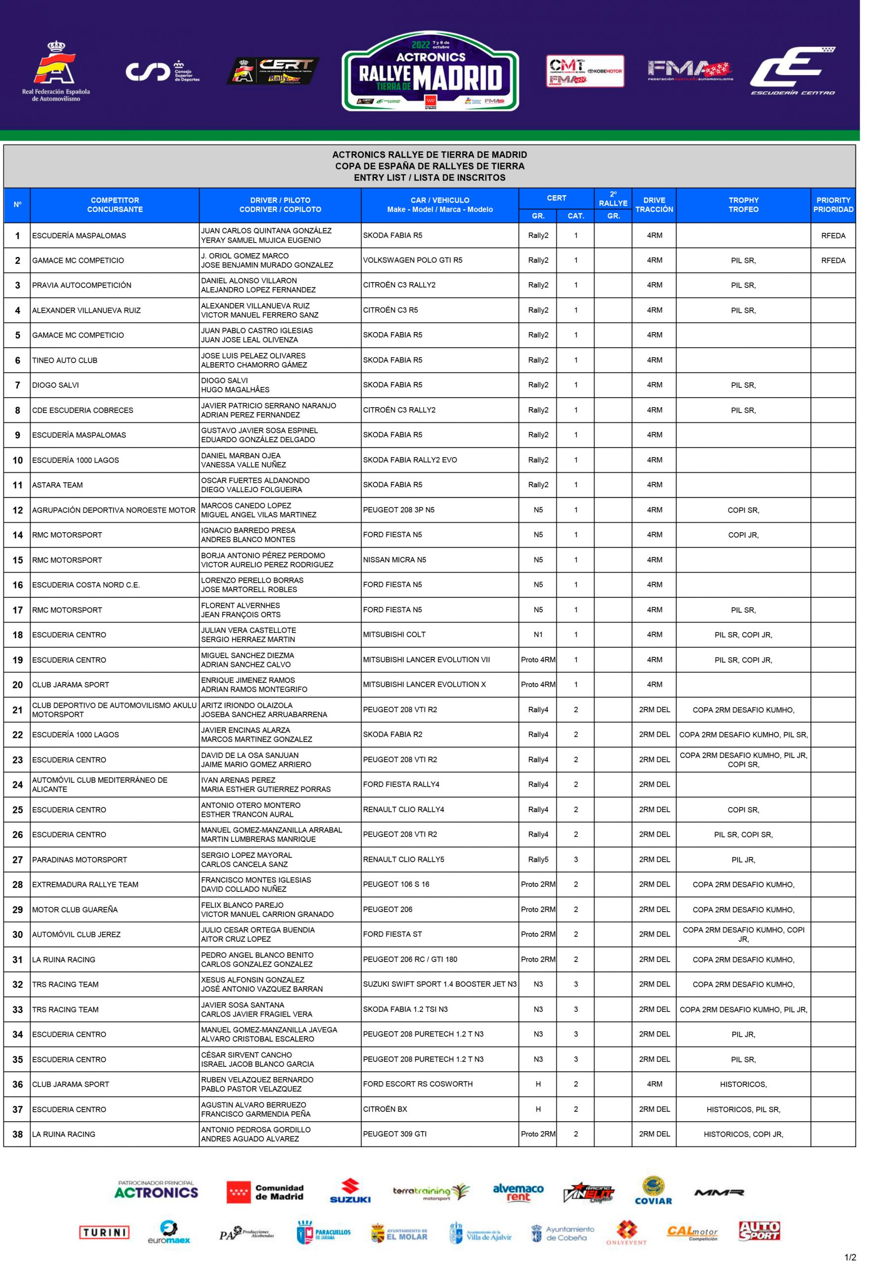 Aquí os traemos la lista de inscritos oficial del Rallye Tierra de Madrid 2022, prueba puntuable para la Copa de España de Rallyes de Tierra.
