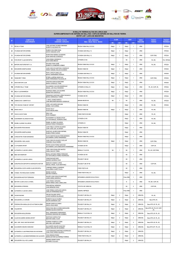 Aquí os dejamos la lista de inscritos Oficial: