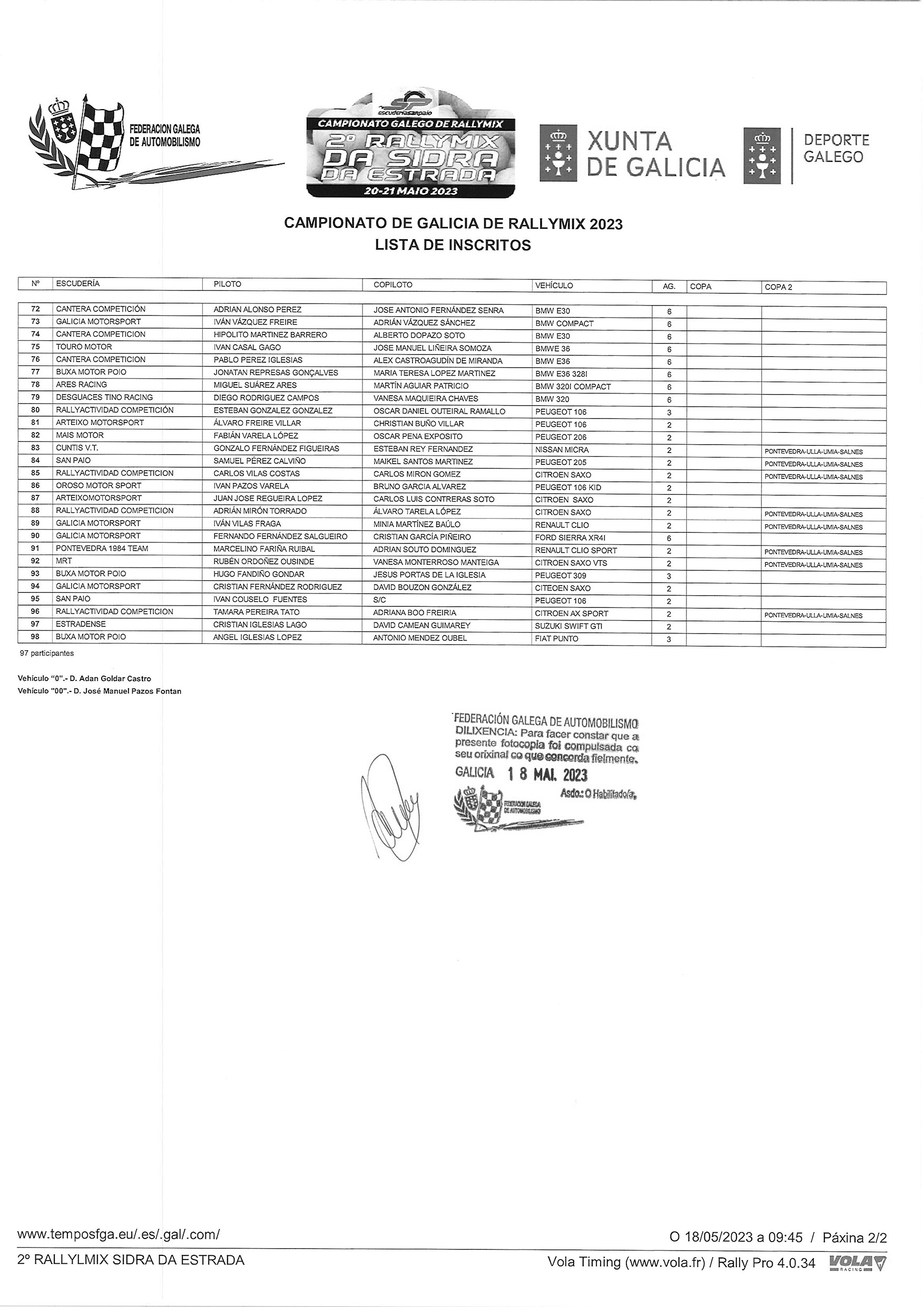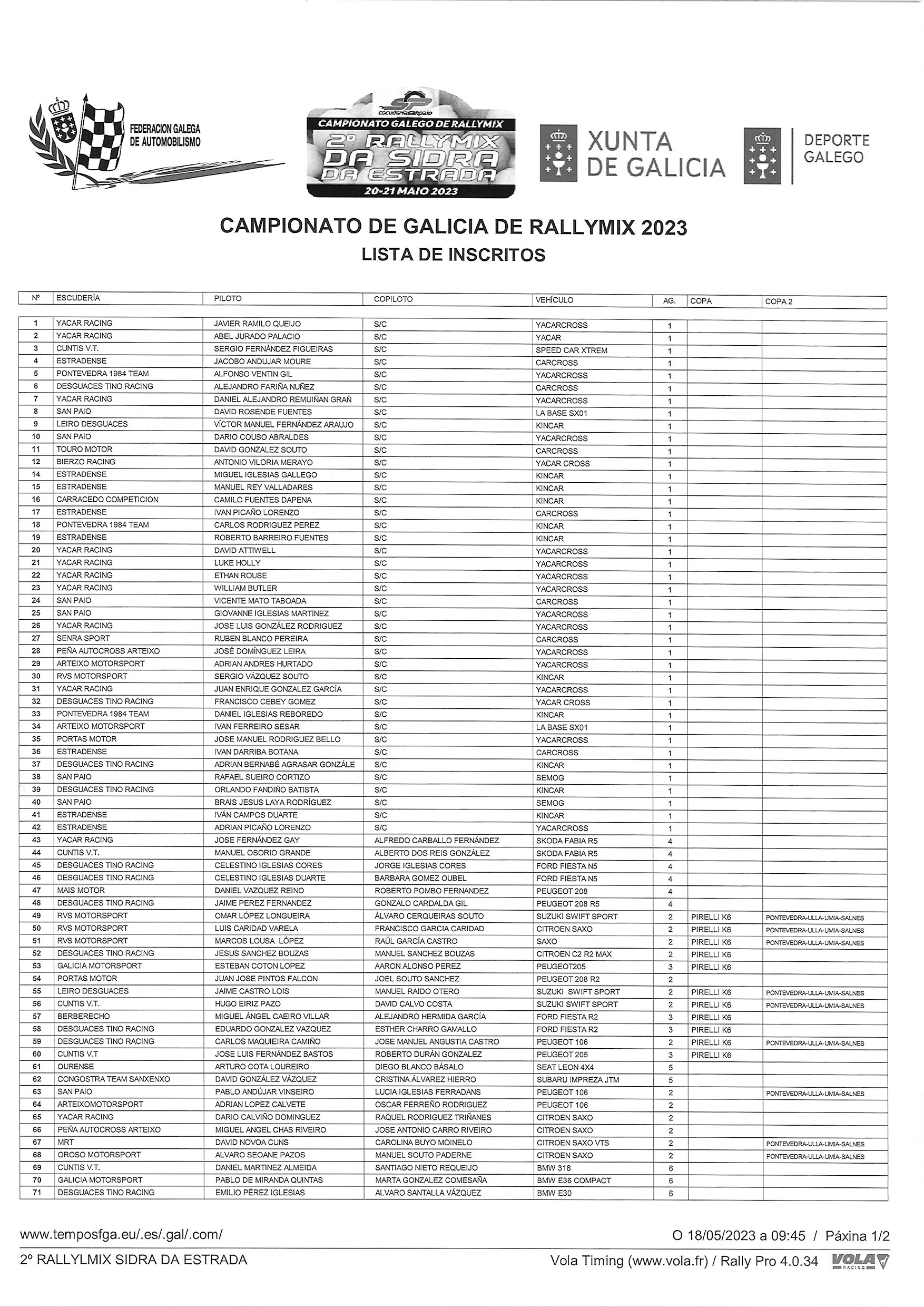 Aquí os dejamos la Lista de inscritos oficial del Rallymix da Sidra da Estrada 2023