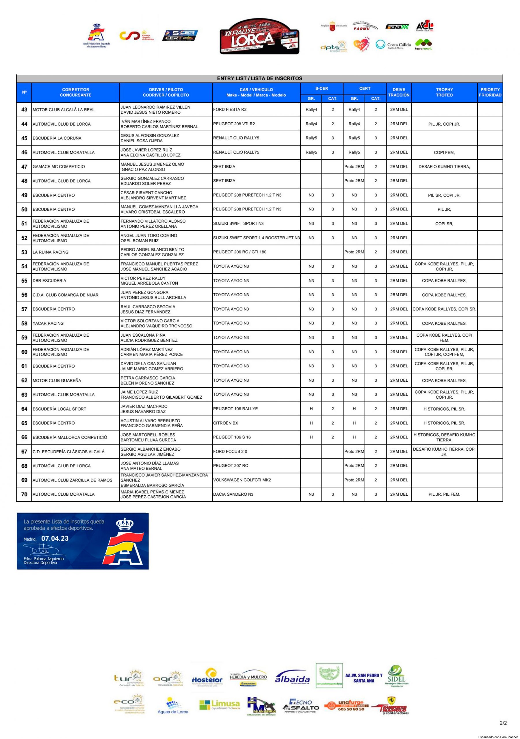 Aquí os dejamos la Lista de Inscritos Oficial