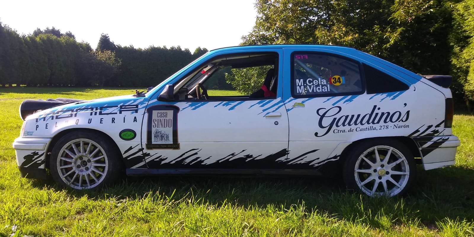La Peluquería Mónica es de una buena amiga que sin gustarle esto nada, un día en una presentación del kadett dijo que quería su pegatina en el coche. Y ahí está apoyando en lo que puede desde aquella. Pero sí, es verdad que conmigo Mónica no gana un euro. Así que, ya que yo no puedo ir, que la gente vaya. Es en Santa Cecilia-Narón (risas).