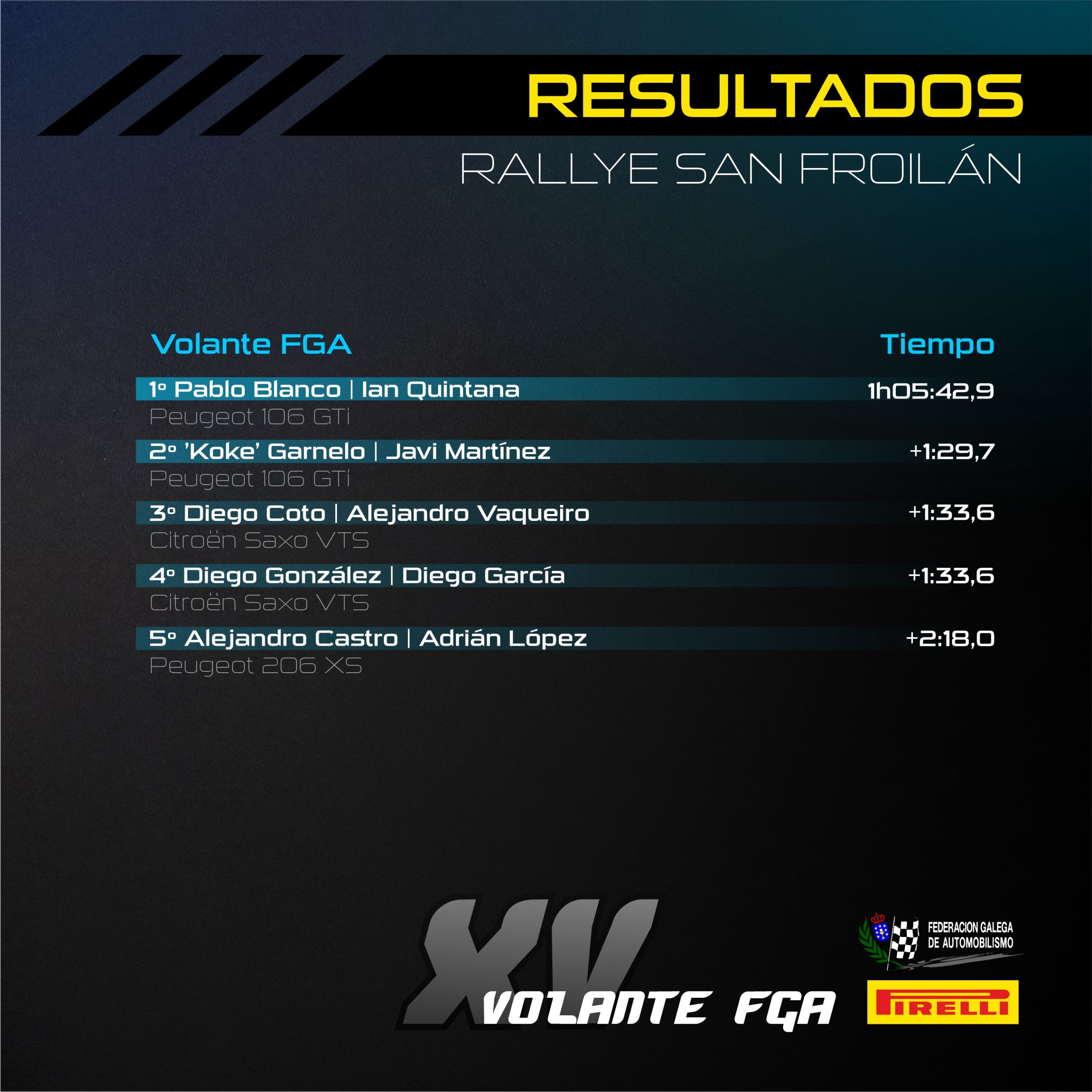 La segunda entrega de la temporada en el Volante FGA iba a ser una continuación de lo visto en la primera, con Pablo Blanco al frente desde los primeros compases, exigiendo un gran ritmo que sus rivales no fueron capaces a alcanzar, y sin que los fantasmas del rallye de A Coruña pudiesen trastocar el triunfo del equipo ourensano, que además se sitúa al frente de la tabla de puntos.