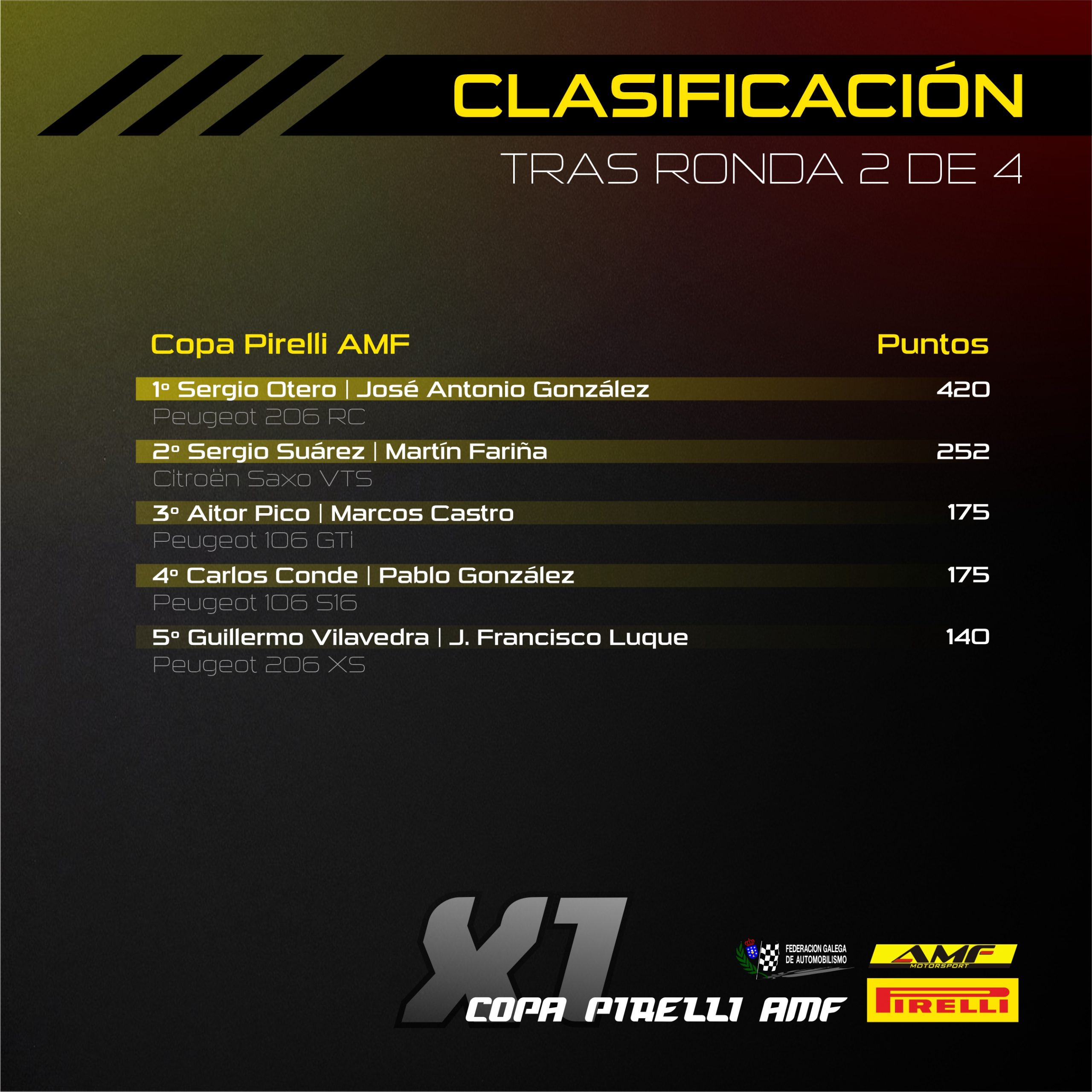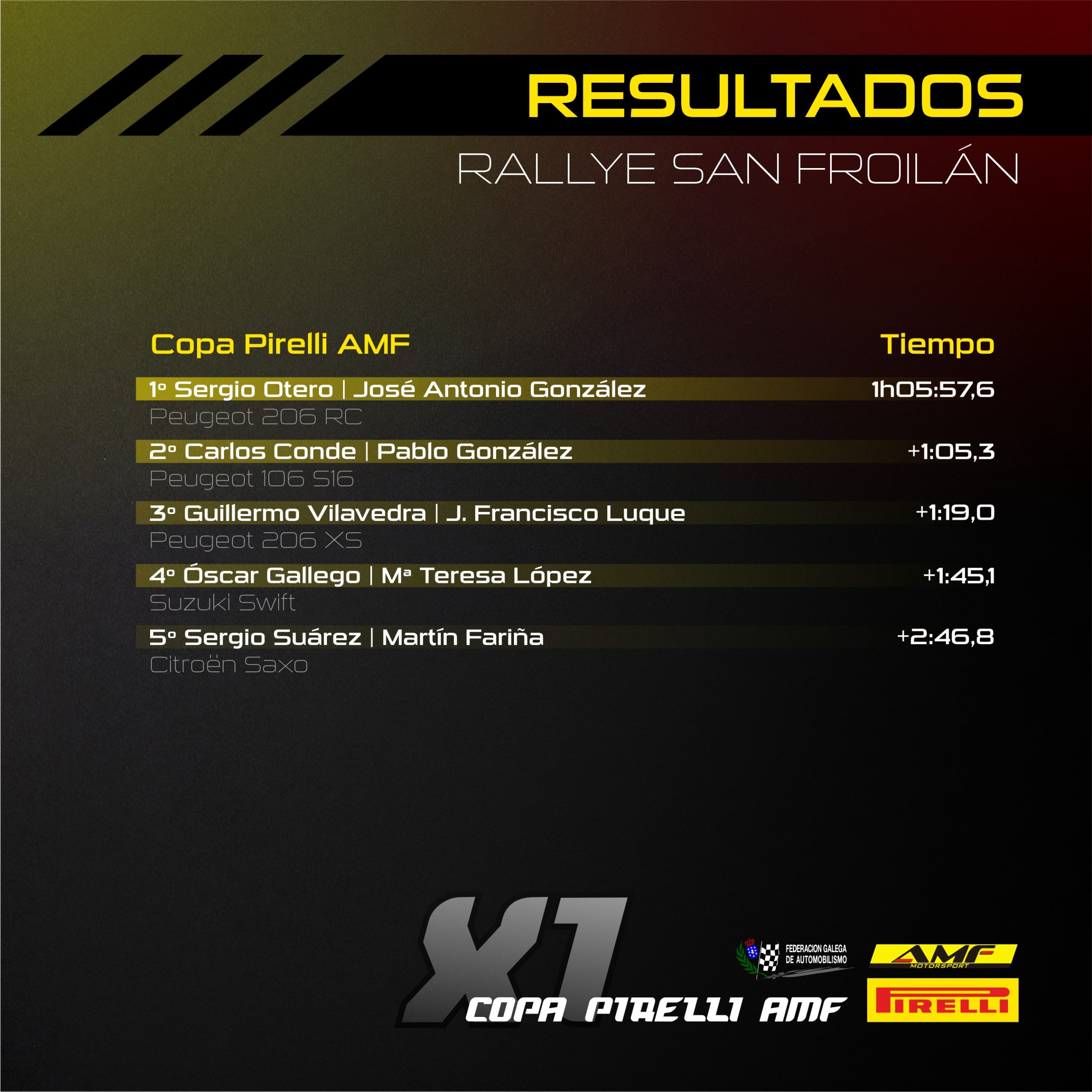 La segunda cita de la Copa Pirelli AMF, el Rallye San Froilán, iba a dejar un claro dominador al frente del certamen. Sergio Otero, muy rápido desde los primeros kilómetros, conseguía una nueva victoria que le deja con una importante ventaja en la cabeza de la clasificación. Los principales rivales que Otero debía hacer frente, Aitor Pico y César Díaz, tuvieron que retirarse.