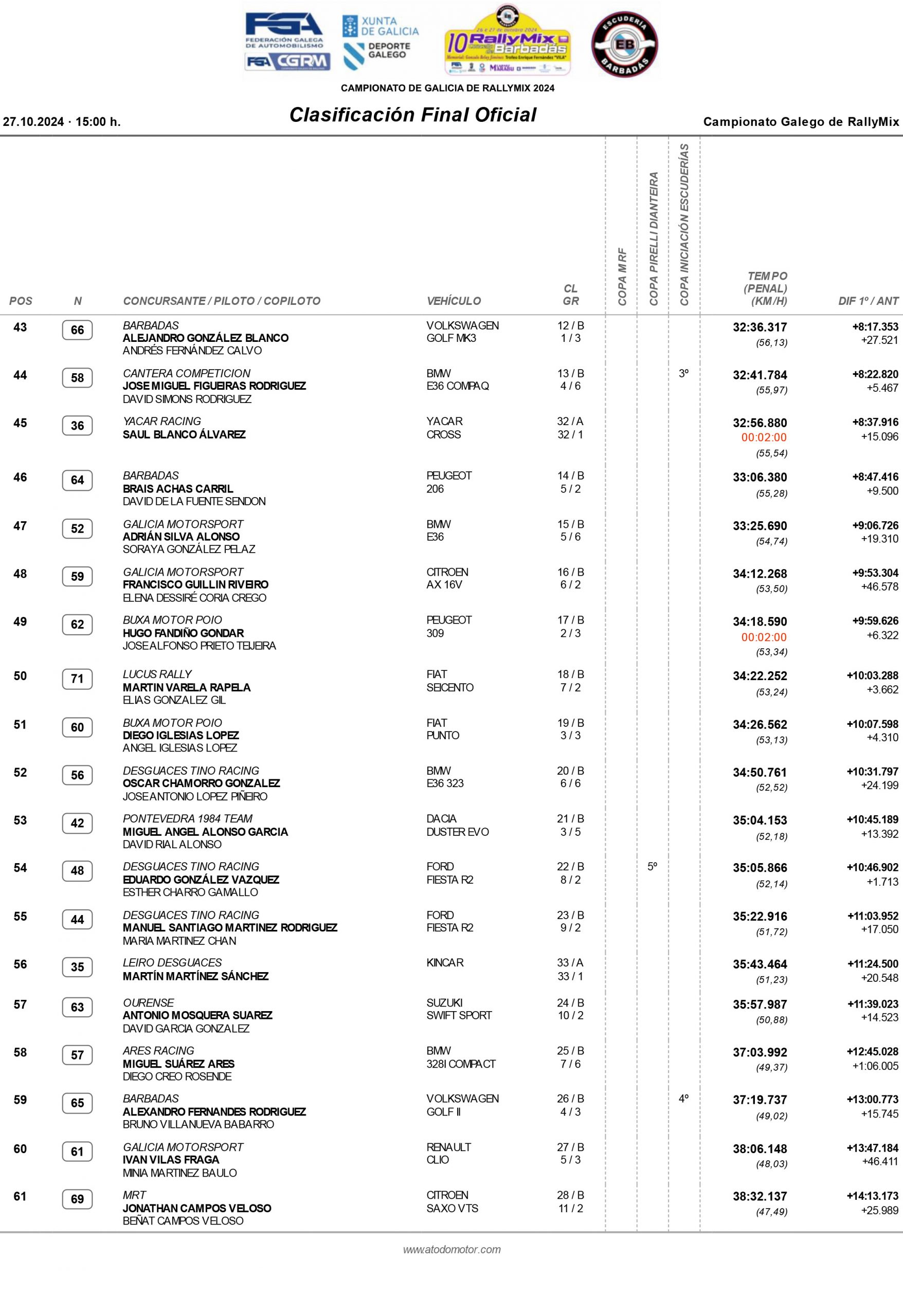 Aquí os dejamos la clasificación final oficial de la prueba: